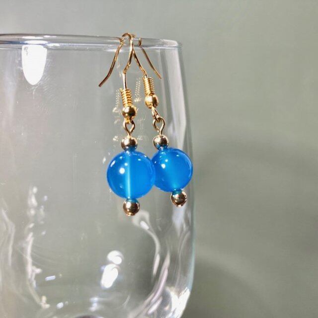 こちらは、10mm玉の青瑪瑙を使用した一粒フックピアスです。シンプルなデザインはシーン問わず、どんなコーディネートにも合わせ易く使い勝手がいいアイテムです。今回は一粒ピアスの要望が多かった為制作しました。気になる方は是非この機会にどうぞ。