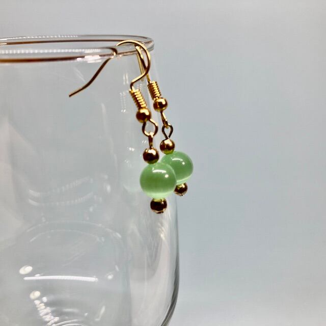 ピアス キャッツアイピアス(ライトグリーン) パワーストーンピアス G