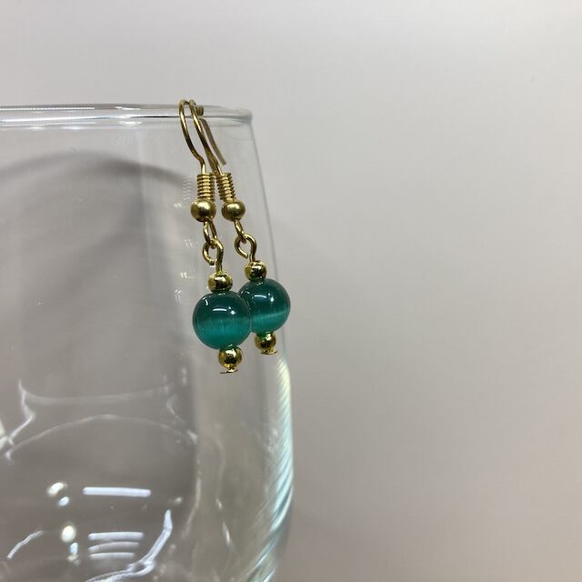 ピアス キャッツアイピアス(ダークグリーン) パワーストーンピアス G