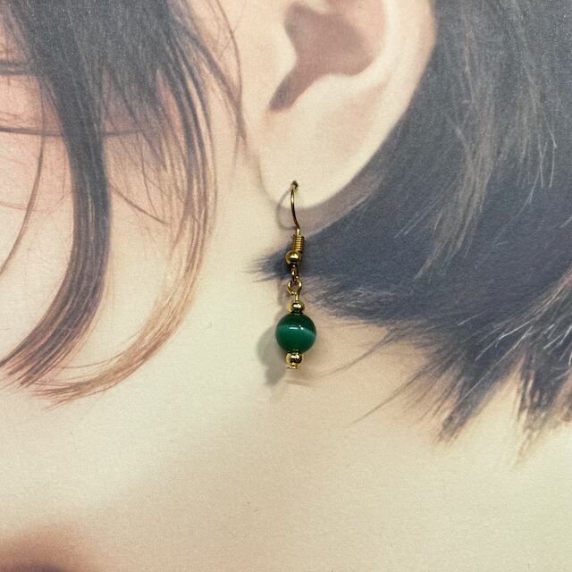こちらは、8mm玉のキャッツアイを使用した一粒フックピアスです。シンプルなデザインはシーン問わず、どんなコーディネートにも合わせ易く使い勝手がいいアイテムです。今回は一粒ピアスの要望が多かった為制作しました。気になる方は是非この機会にどうぞ。