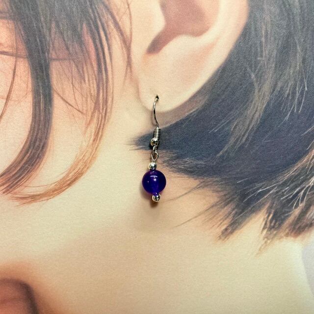 ジェイドピアス(パープル) 一粒フックピアス  8mm S イヤリング