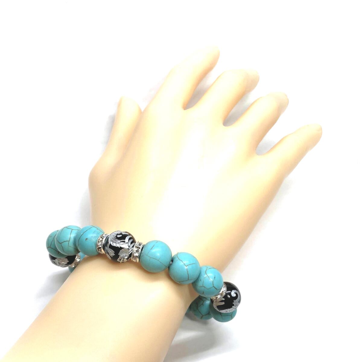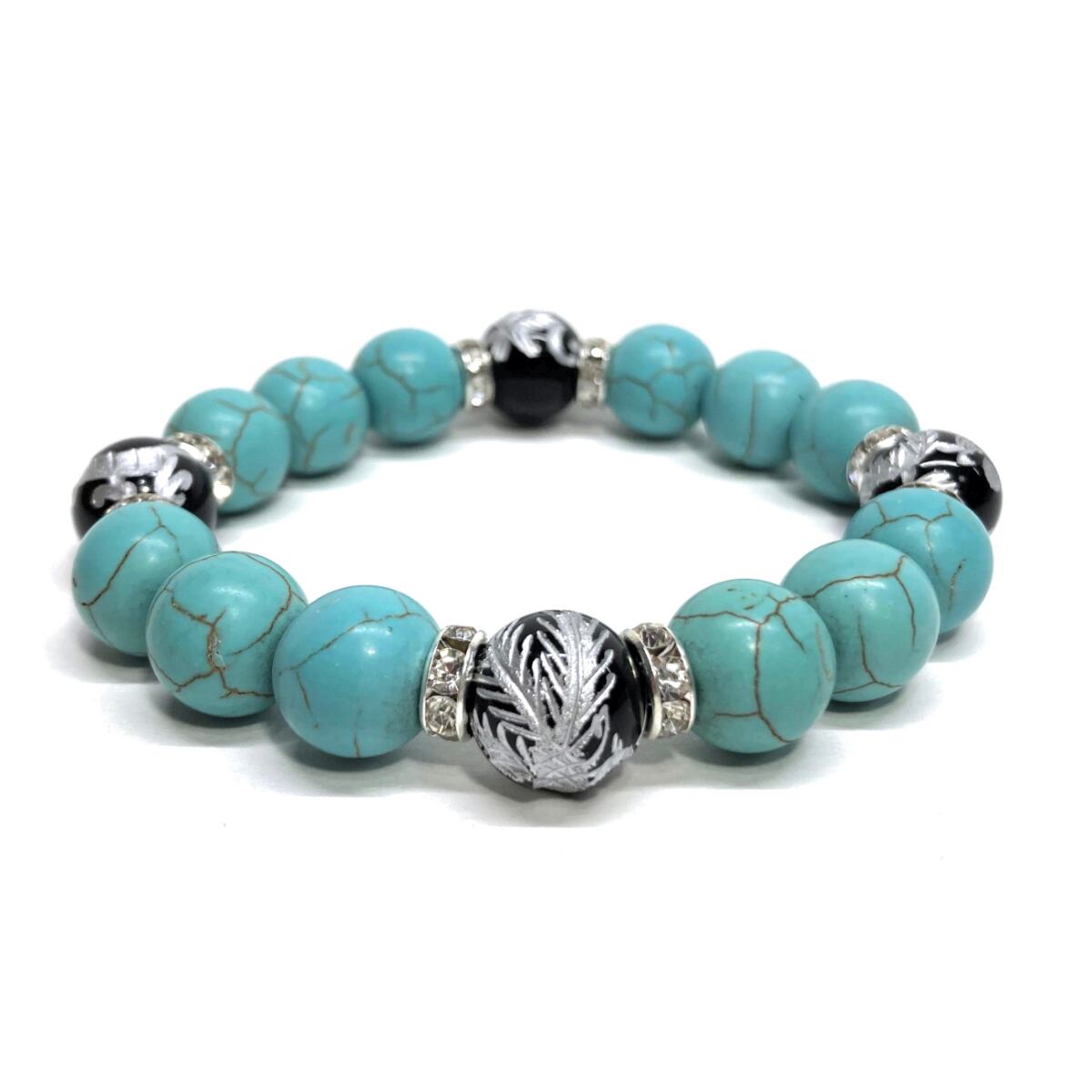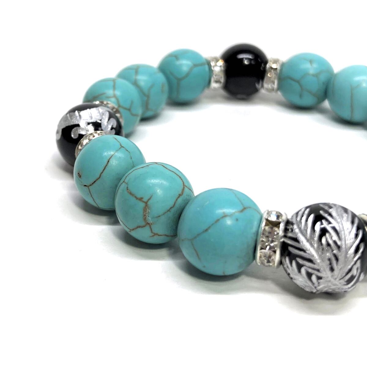 12mm 四神獣銀彫オニキス×ターコイズ パワーストーン ブレスレット 運気上昇 開運 金運 健康運 厄除け お守り 青龍 白虎 玄武 朱雀 SL /2 | パワーストーン 天然石 Kinari&Co.