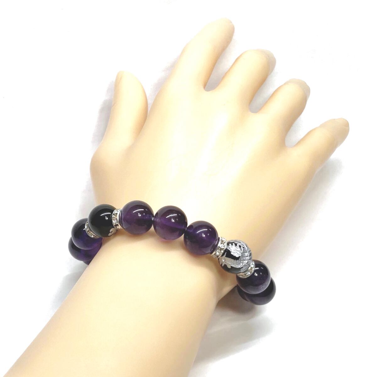 12mm 四神獣銀彫オニキス×アメジスト パワーストーン ブレスレット天然石 運気上昇 開運 恋愛運 お守り 青龍 白虎 玄武 朱雀 2月誕生石 SL | パワーストーン 天然石 Kinari&Co.