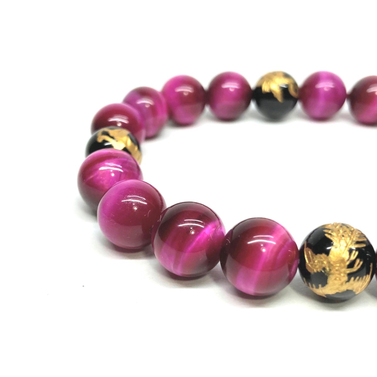 10mm 四神獣金彫オニキス×ピンクタイガーアイ パワーストーン ブレスレット天然石 運気上昇 開運 金運 恋愛運 お守り 青龍 白虎 玄武 朱雀