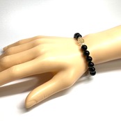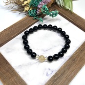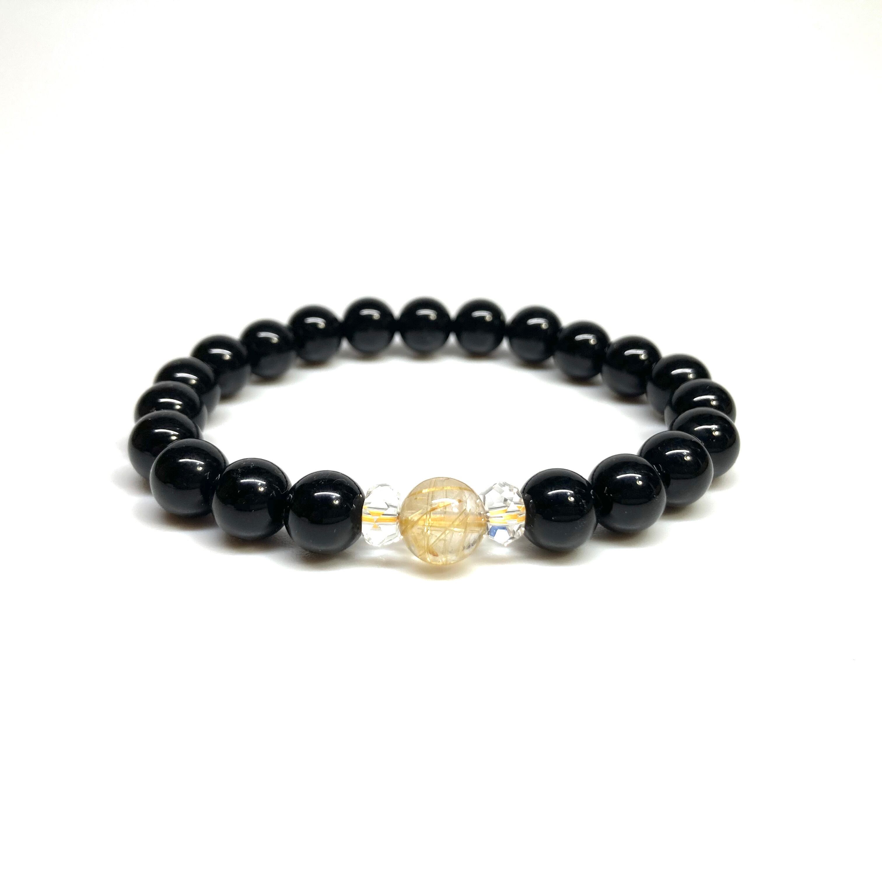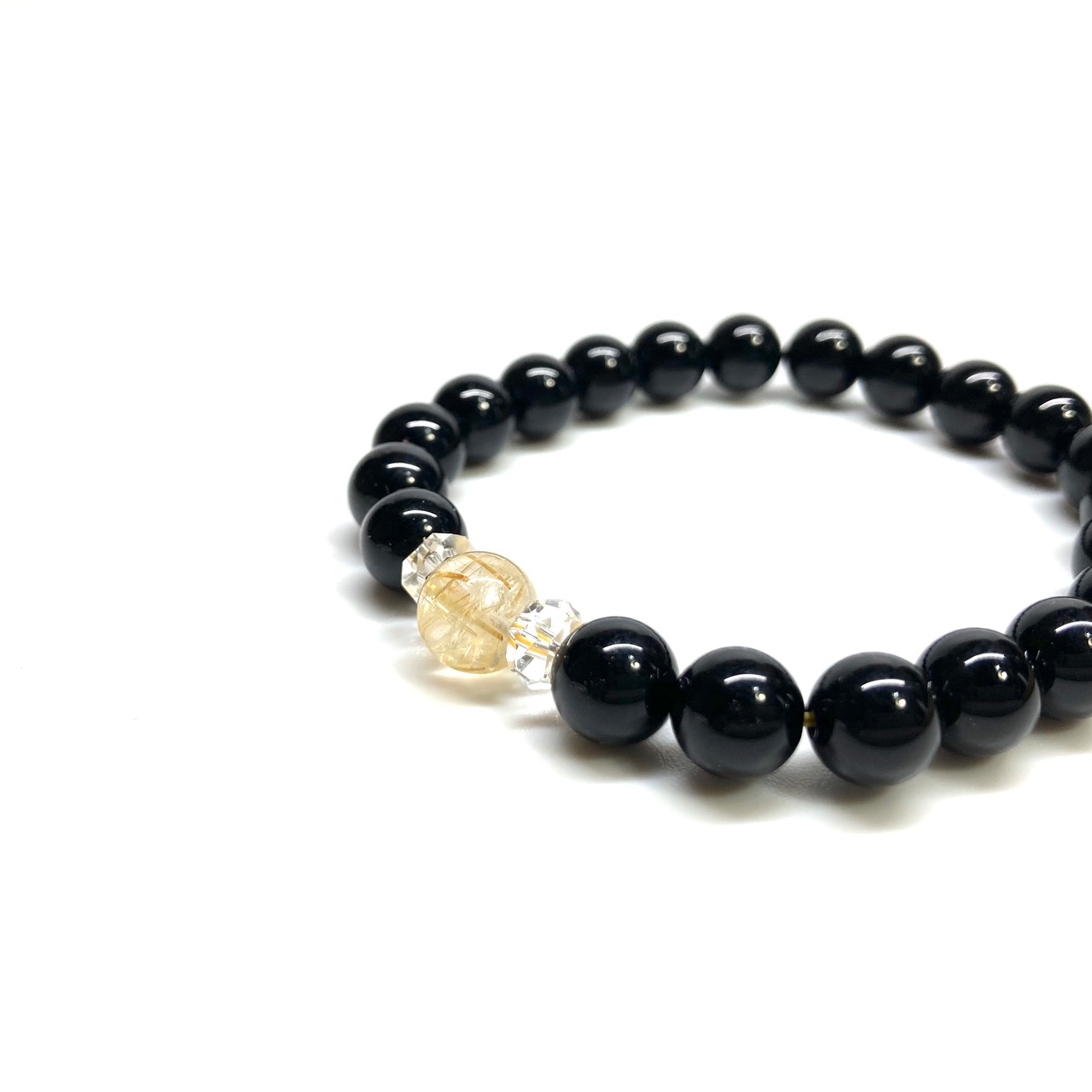 こちらは、ルチルクォーツとオニキスを組み合わせた一粒ブレスレットです。石大きさ8mm玉で基本サイズは内周15cmです。(サイズ変更は1cmあたり100円で承っております。サイズ変更の場合は金額変更しますのでメッセージにてご連絡くださいませ。)プチギフトとしてプレゼントしてもいいと思います。