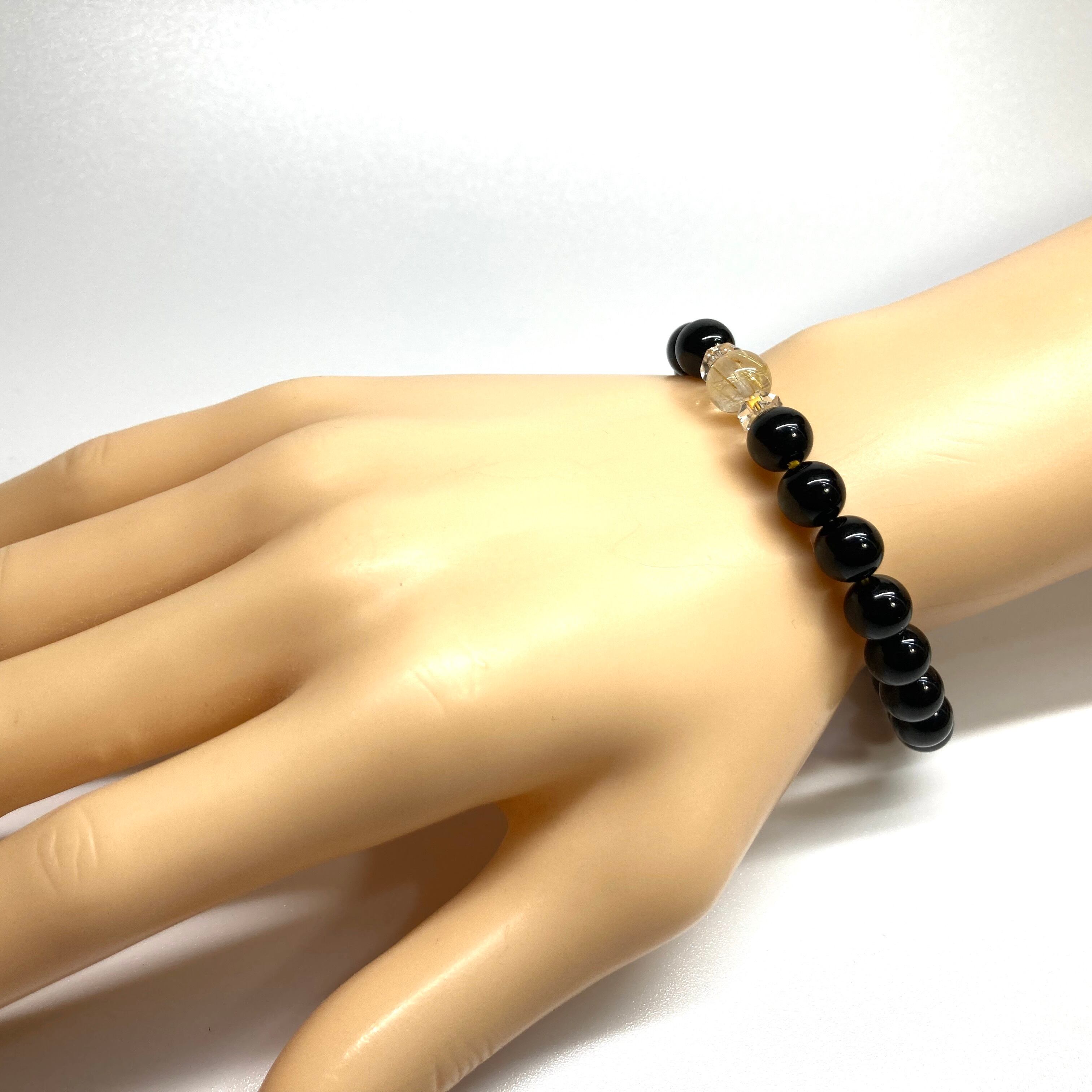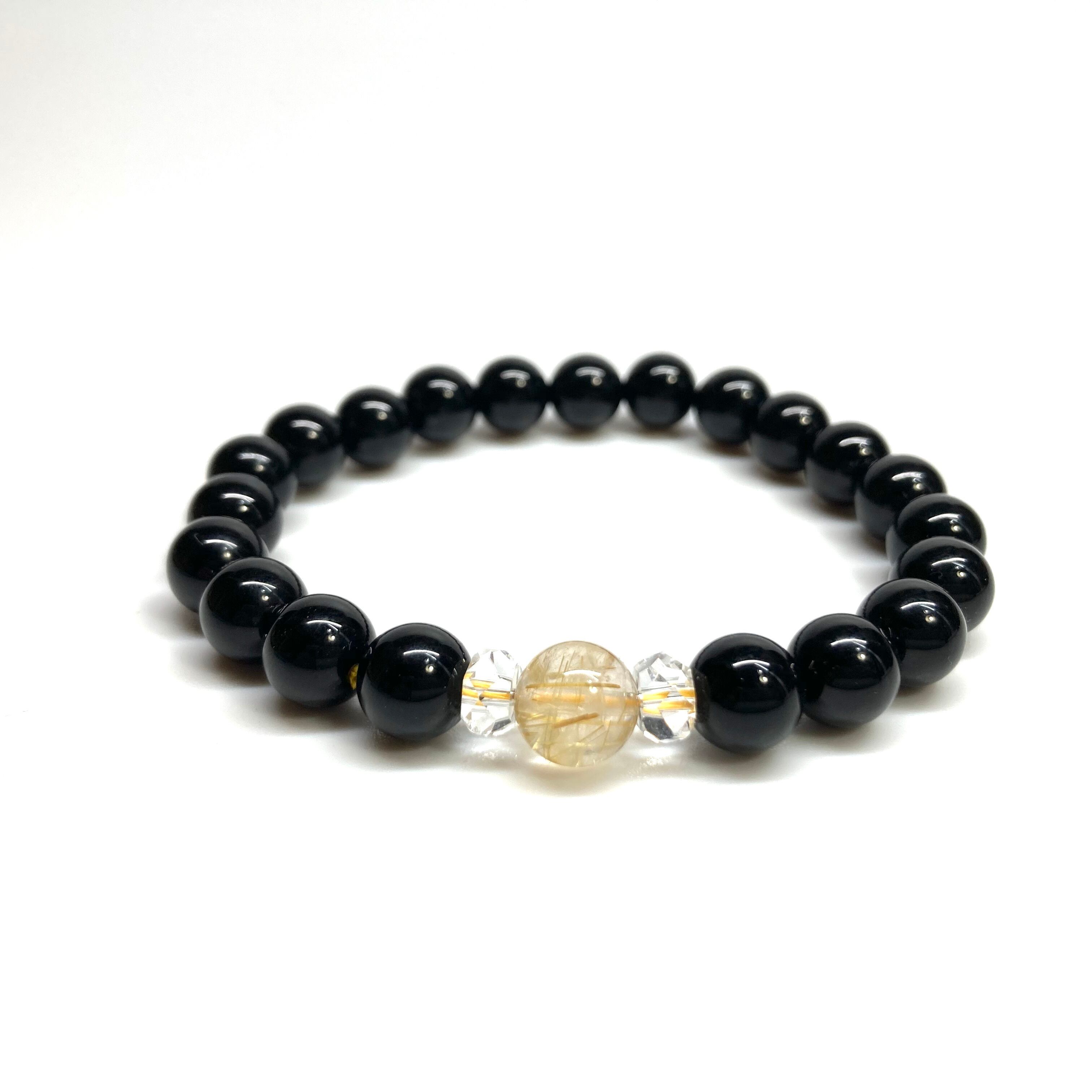 こちらは、ルチルクォーツとモリオンを組み合わせた一粒ブレスレットです。石大きさ8mm玉で基本サイズは内周15cmです。(サイズ変更は1cmあたり100円で承っております。サイズ変更の場合は金額変更しますのでメッセージにてご連絡くださいませ。)プチギフトとしてプレゼントしてもいいと思います。