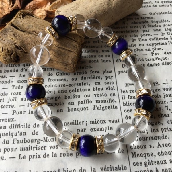 こちらは、10mm玉のパープルタイガーアイと10mm&8mmの水晶を使用したブレスレットです。今回は五芒星デザインをベースに間にはロンデルを挟み高級感あるデザインに仕上げています。内周約17cm(伸可能)です。気になる方は是非この機会にどうぞ。