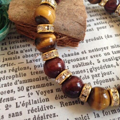 こちらは、タイガーアイとレッドタイガーアイのミックスブレスレットです。間にはゴールドのロンデルで高級感溢れるデザインに仕上がっています。石大きさは腕にも馴染みやすいように10mm玉で内周約17cm(伸可能)です。気になる方は是非この機会にどうぞ。