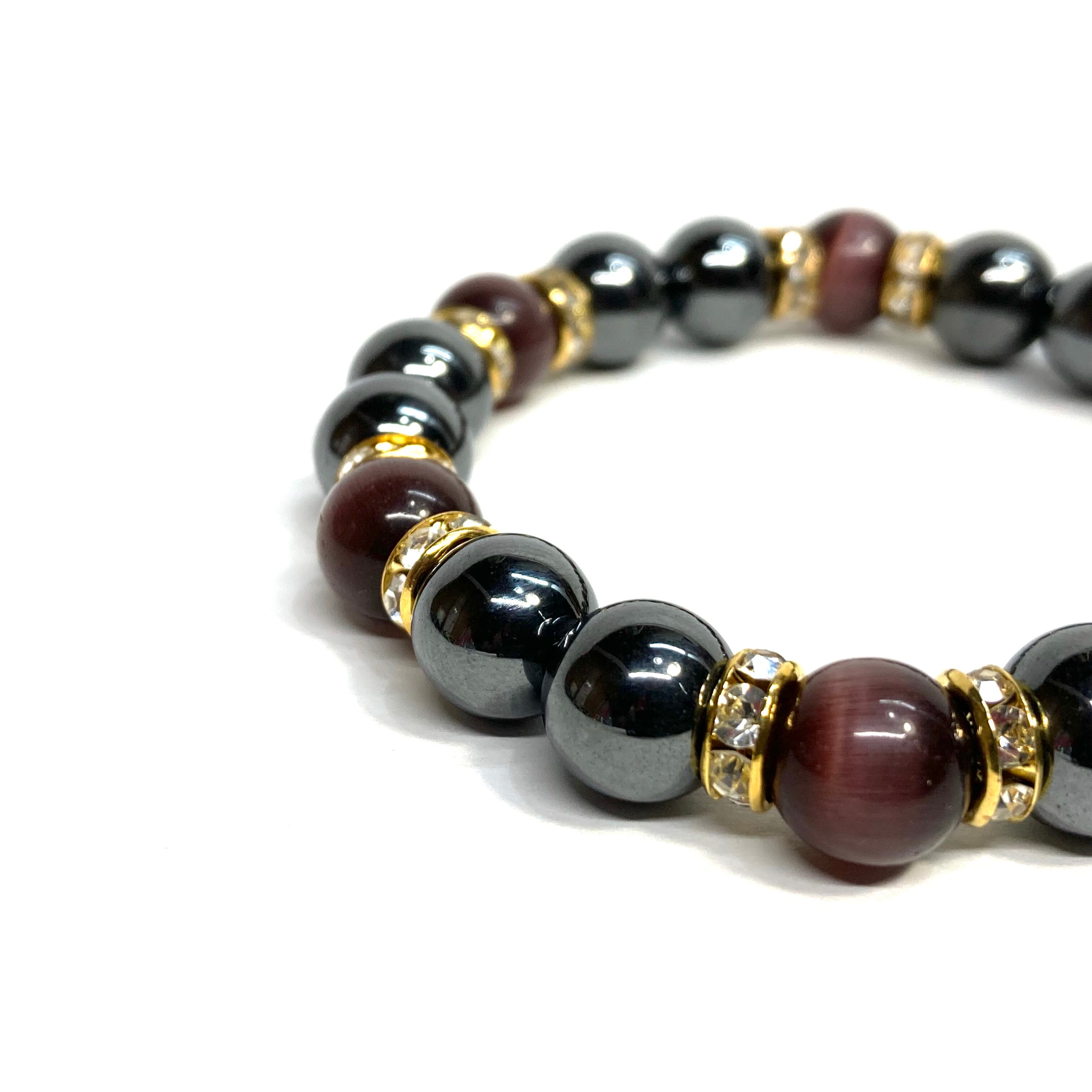 キャッツアイ(パープル) ヘマタイト パワーストーン ブレスレット (ゴールド) メンズ・レディース 男性・女性 数珠ブレス 開運