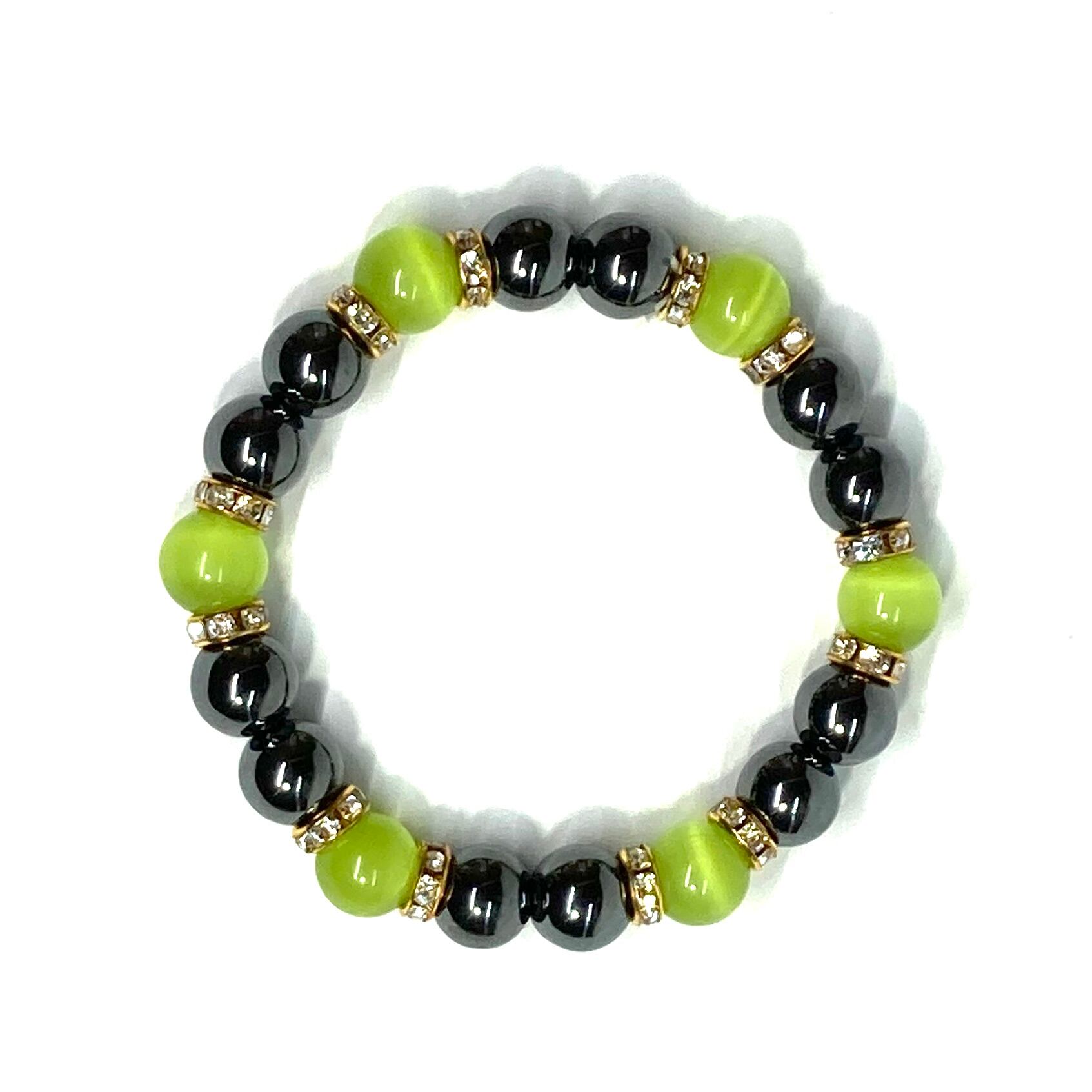 キャッツアイ(ライムグリーン) ヘマタイト パワーストーン ブレスレット (ゴールド) メンズ・レディース 男性・女性 数珠ブレス 開運