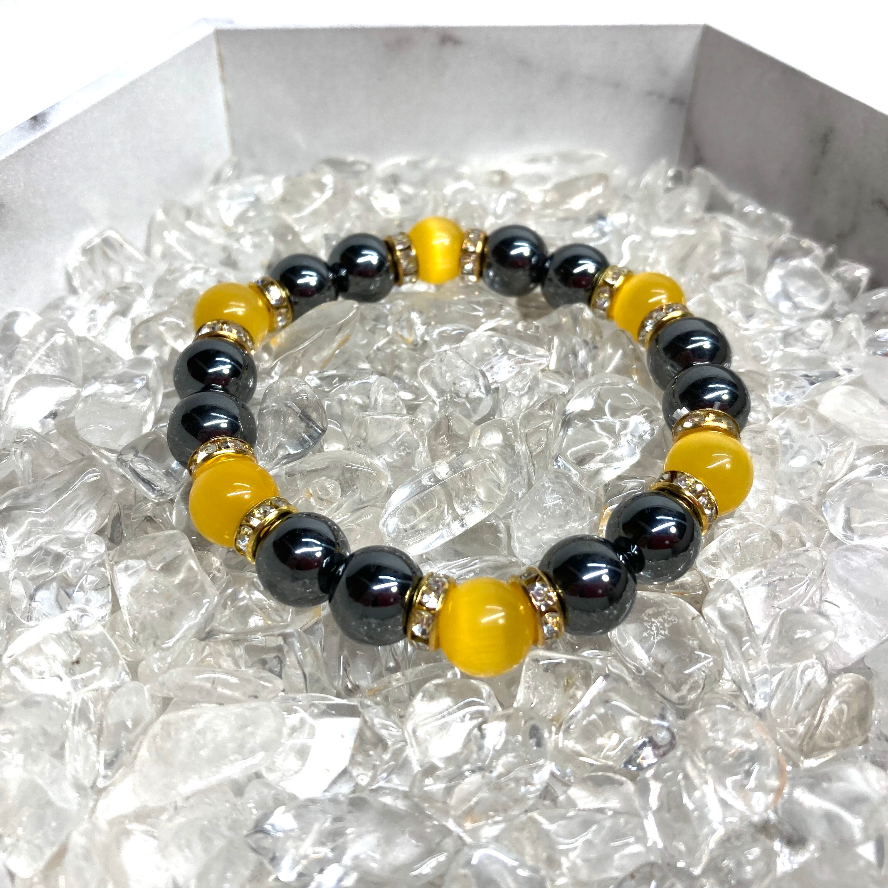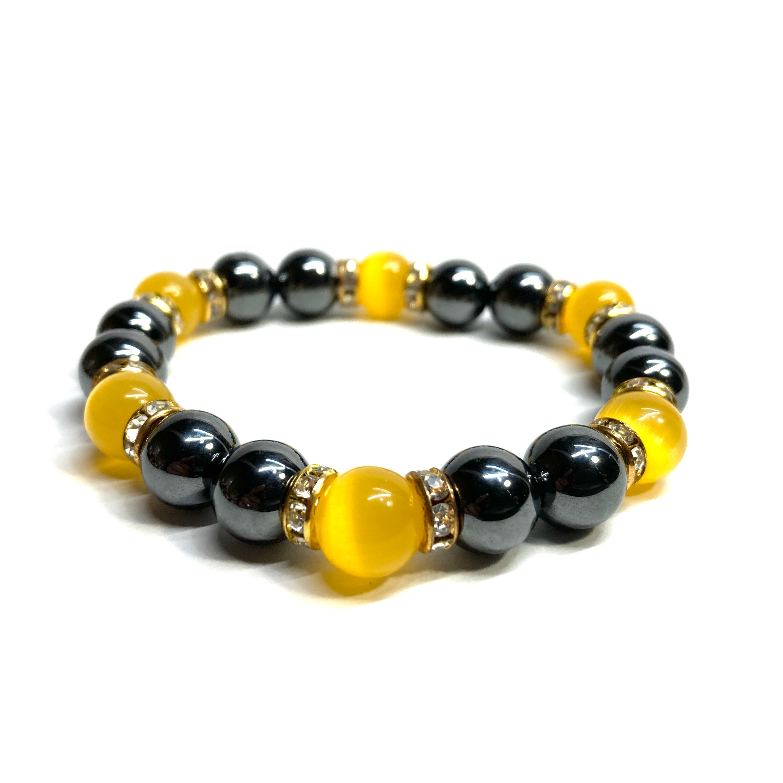 キャッツアイ(イエロー) ヘマタイト パワーストーン ブレスレット (ゴールド) メンズ・レディース 男性・女性 数珠ブレス 開運