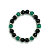 こちらは、キャッツアイとオニキスを組み合わせたブレスレットです。間にはロンデルを挟み高級感あるデザインに仕上がっています。石大きさは腕にも馴染みやすいように10mm玉で内周約16cm(伸可能)です。数に限りがございますので気になる方はお早めにどうぞ。