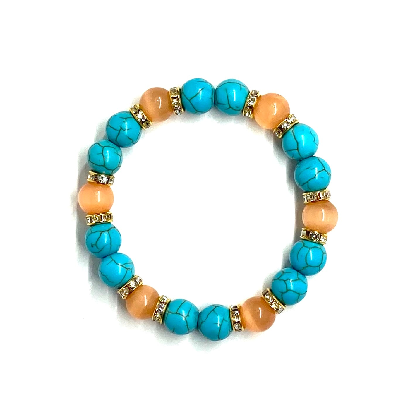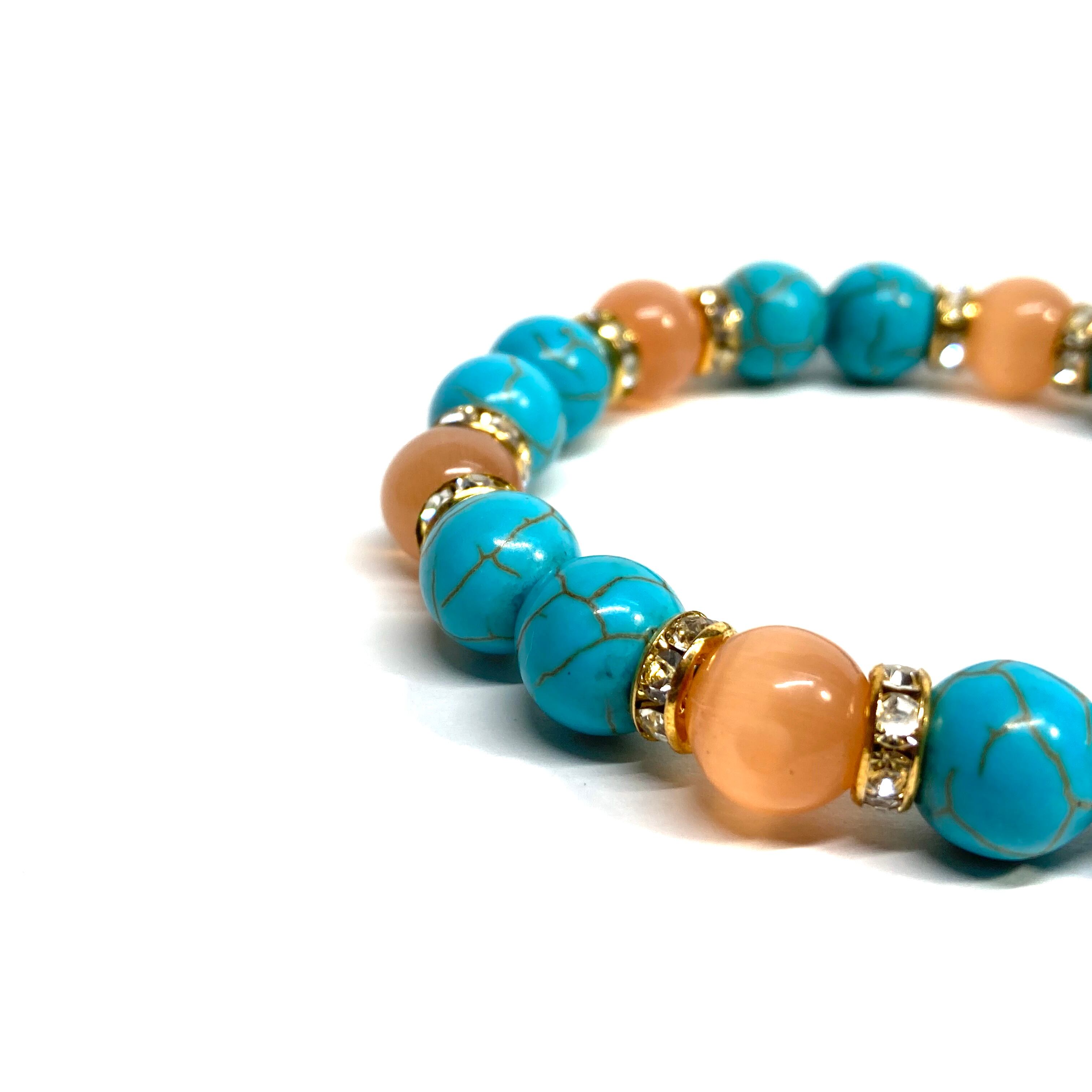キャッツアイ(オレンジ) ターコイズ パワーストーン ブレスレット (ゴールド) メンズ・レディース 男性・女性 数珠ブレス 開運