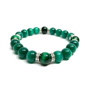 こちらは、キャッツアイとグリーンタイガーアイを組み合わせたブレスレットです。間にはロンデルを挟み高級感あるデザインに仕上がっています。石大きさは腕にも馴染みやすいように10mm玉で内周約17cm(伸可能)です。数に限りがございますので気になる方はお早めにどうぞ。