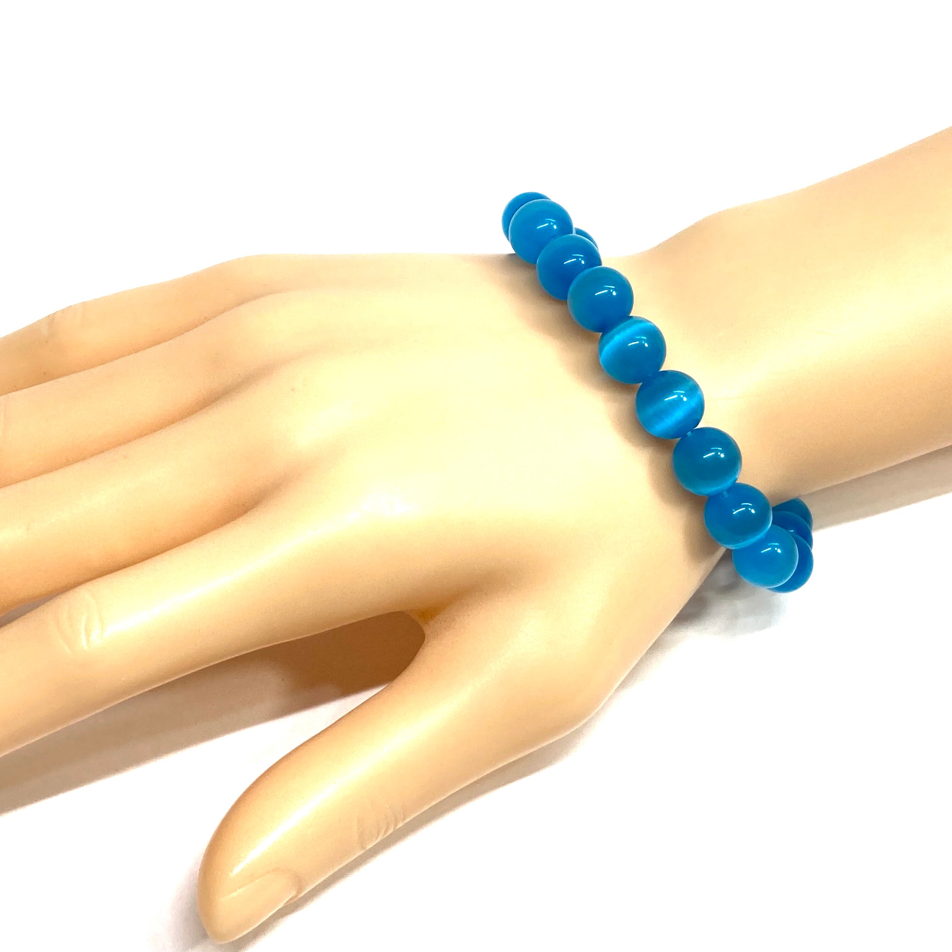 キャッツアイ(ライトブルー) パワーストーン ブレスレット (シンプル) メンズ・レディース 男性・女性 数珠ブレス 開運
