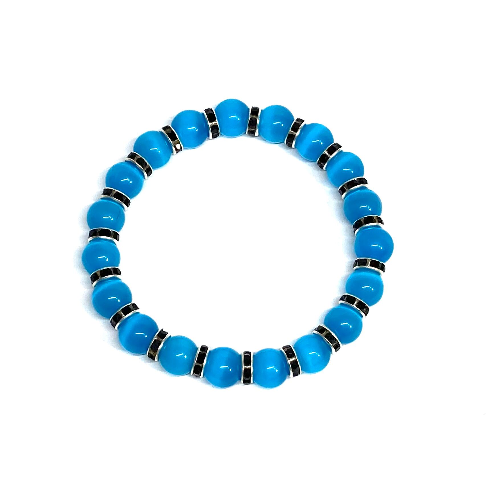 キャッツアイ(ライトブルー) パワーストーン ブレスレット (ブラック) メンズ・レディース 男性・女性 数珠ブレス 開運