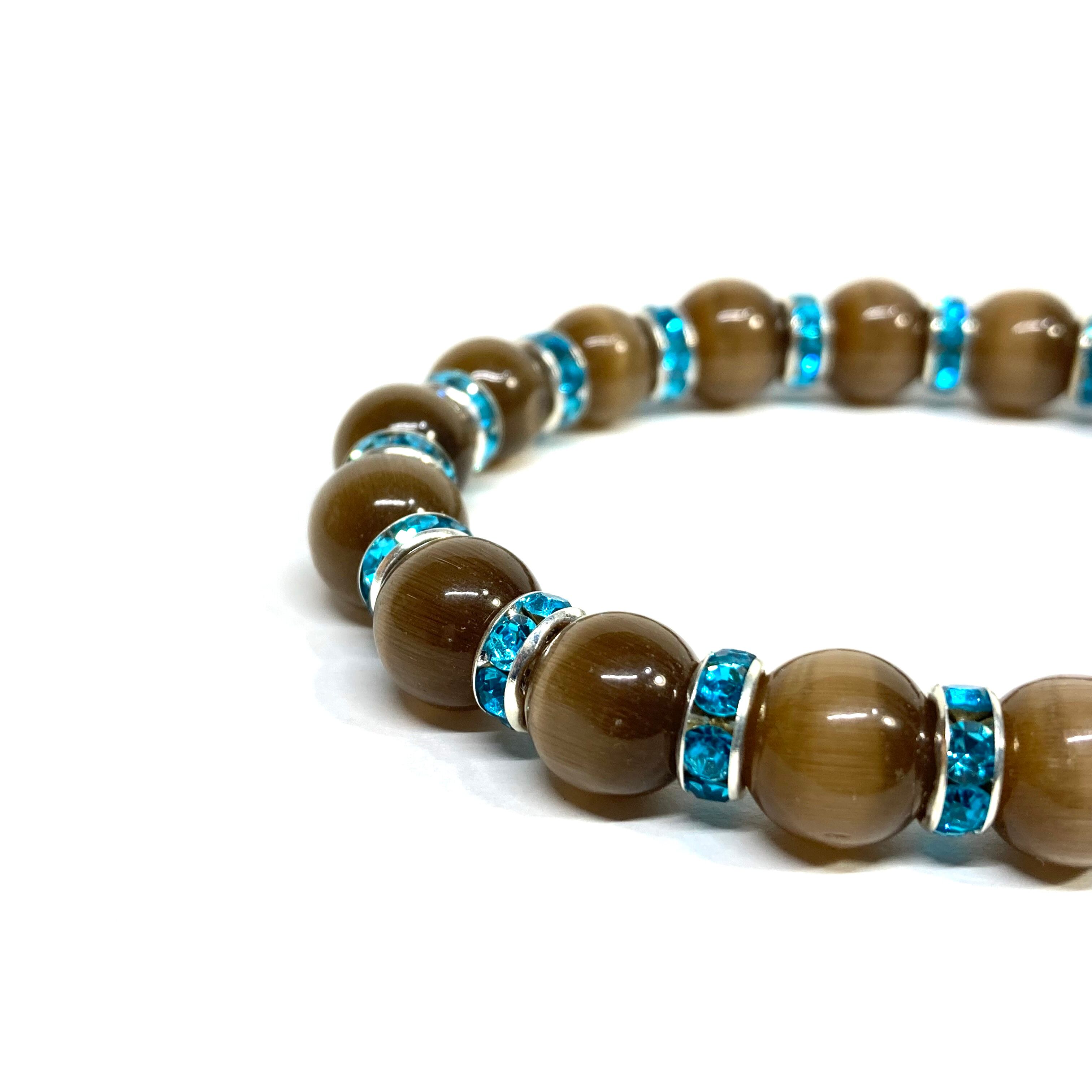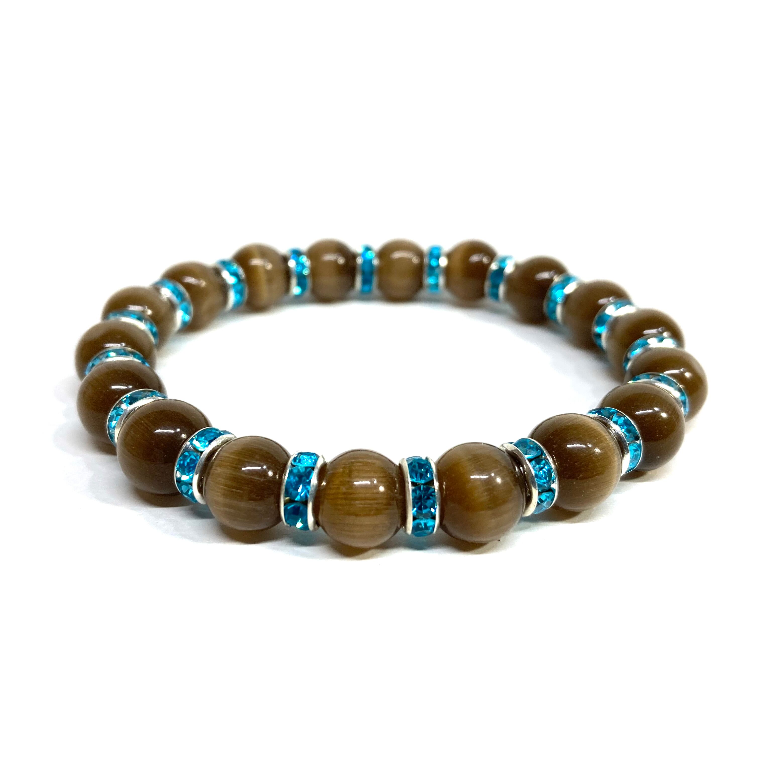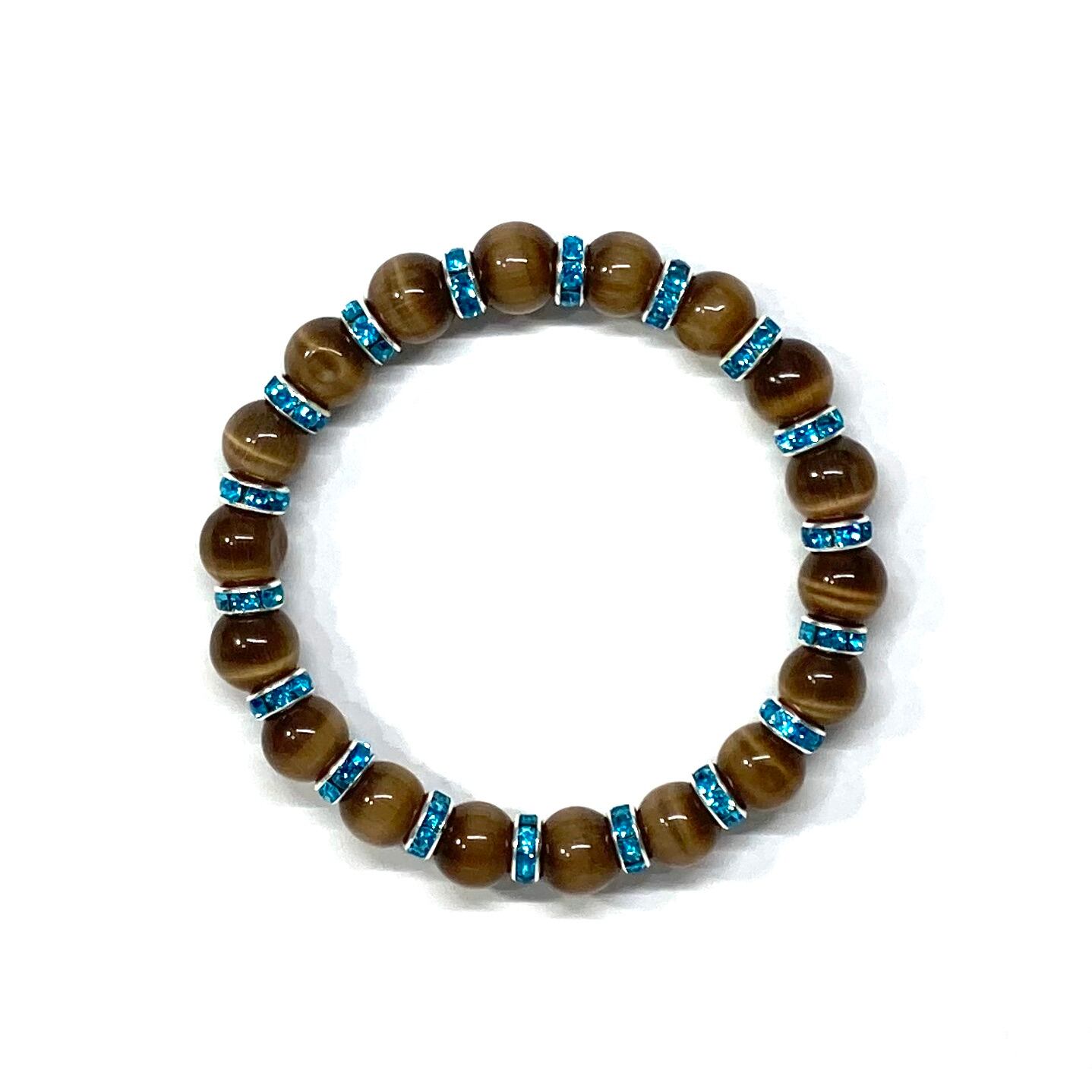 キャッツアイ(ブラウン) パワーストーン ブレスレット (ライトブルー) メンズ・レディース 男性・女性 数珠ブレス 開運