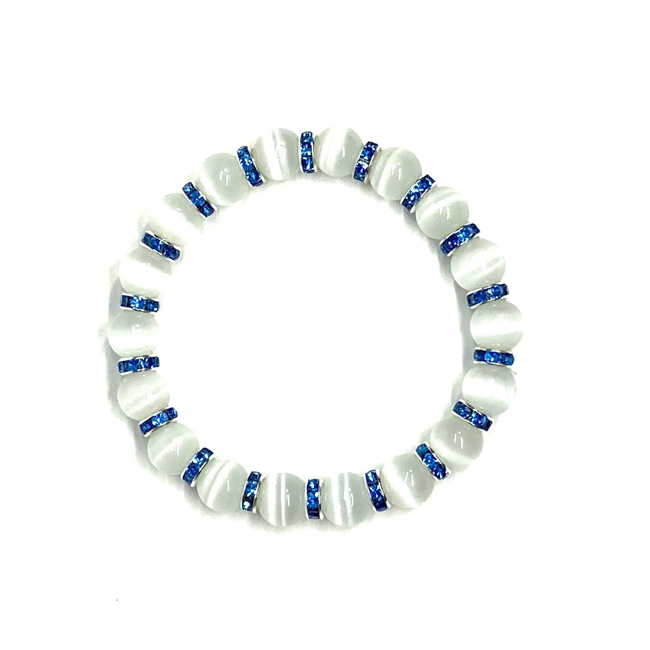 キャッツアイ(ホワイト) パワーストーン ブレスレット (ブルー) メンズ・レディース 男性・女性 数珠ブレス 開運