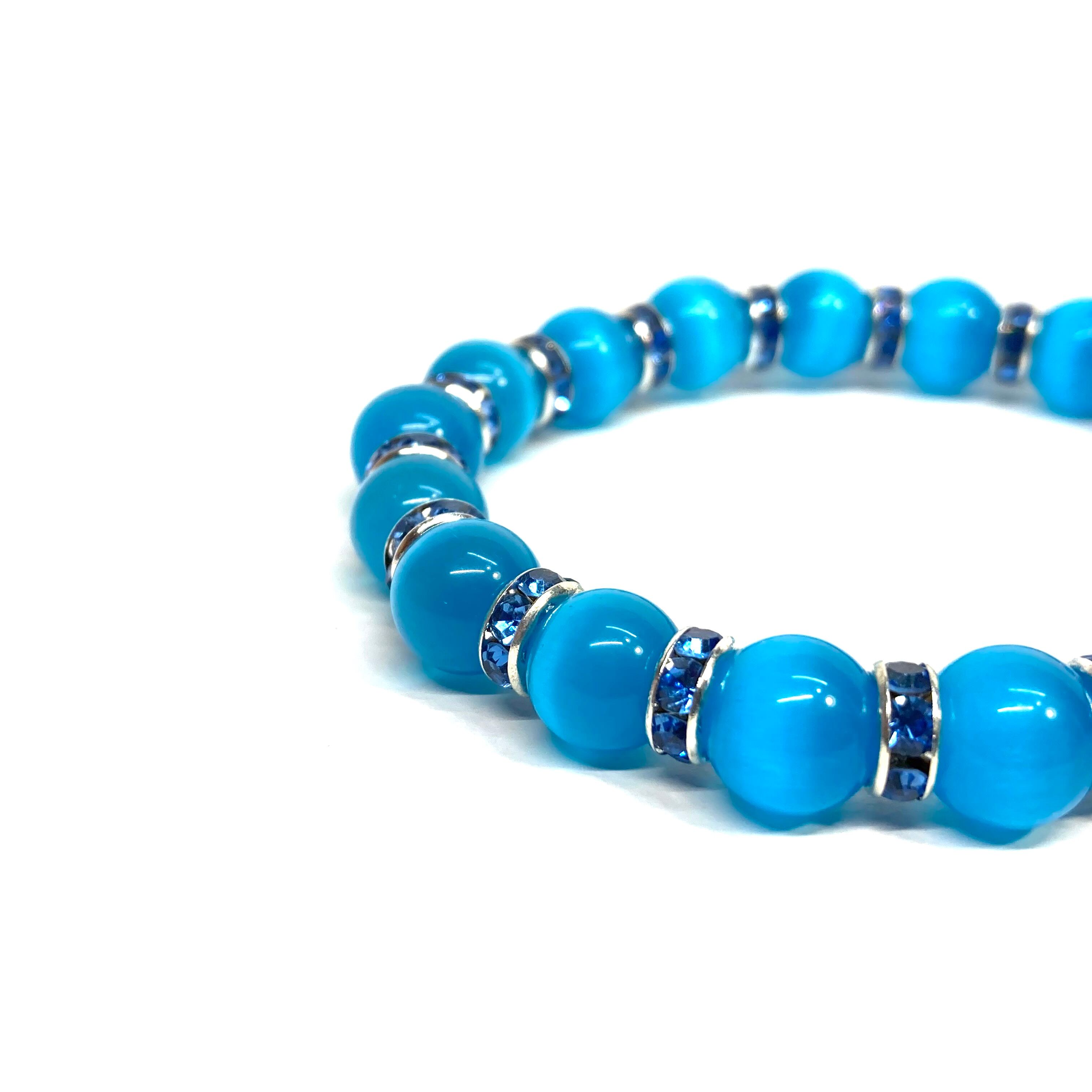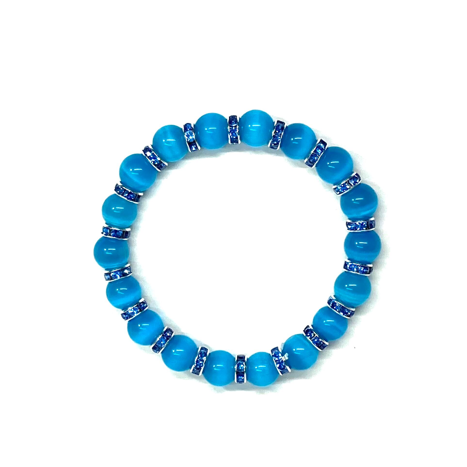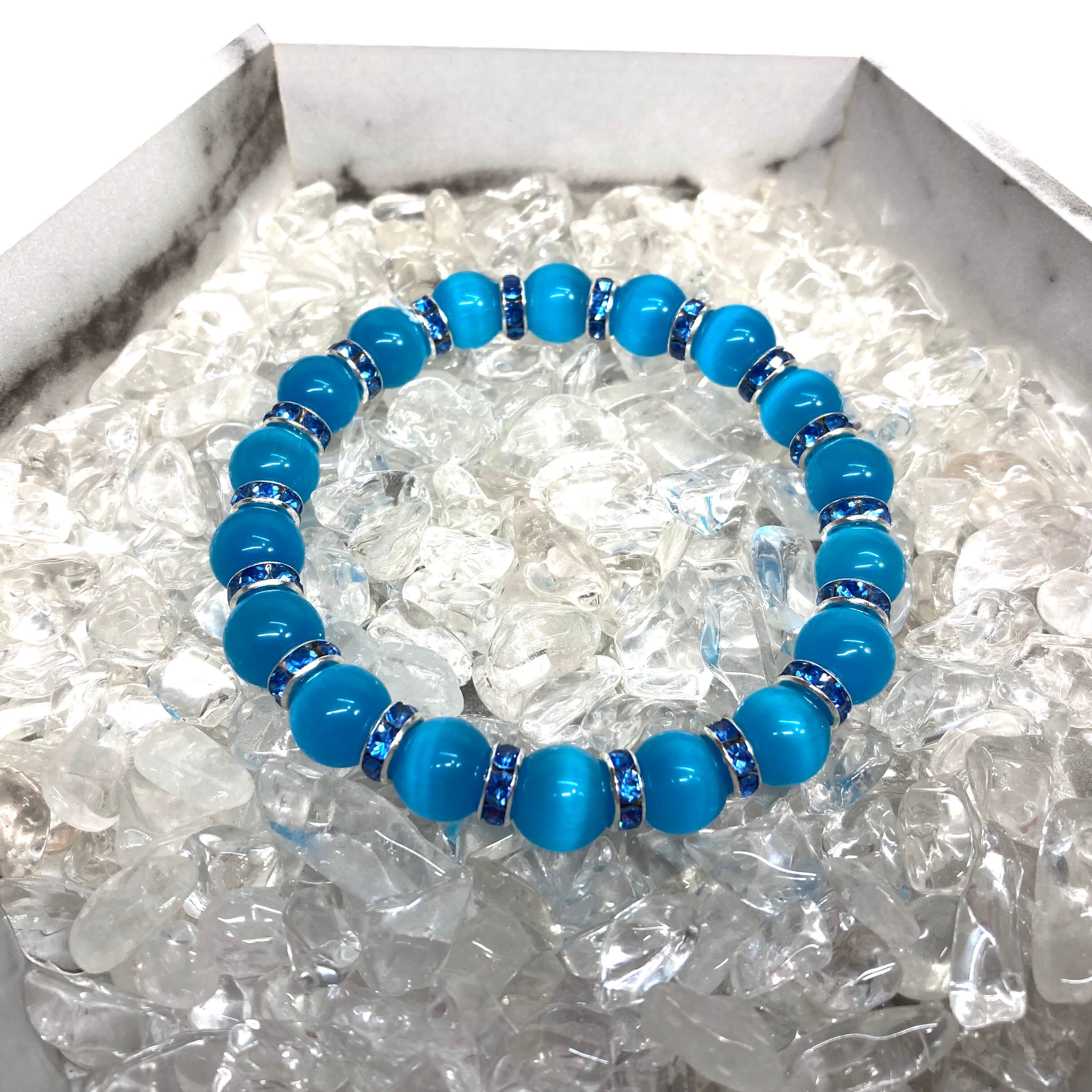 キャッツアイ(ライトブルー) パワーストーン ブレスレット (ブルー) メンズ・レディース 男性・女性 数珠ブレス 開運