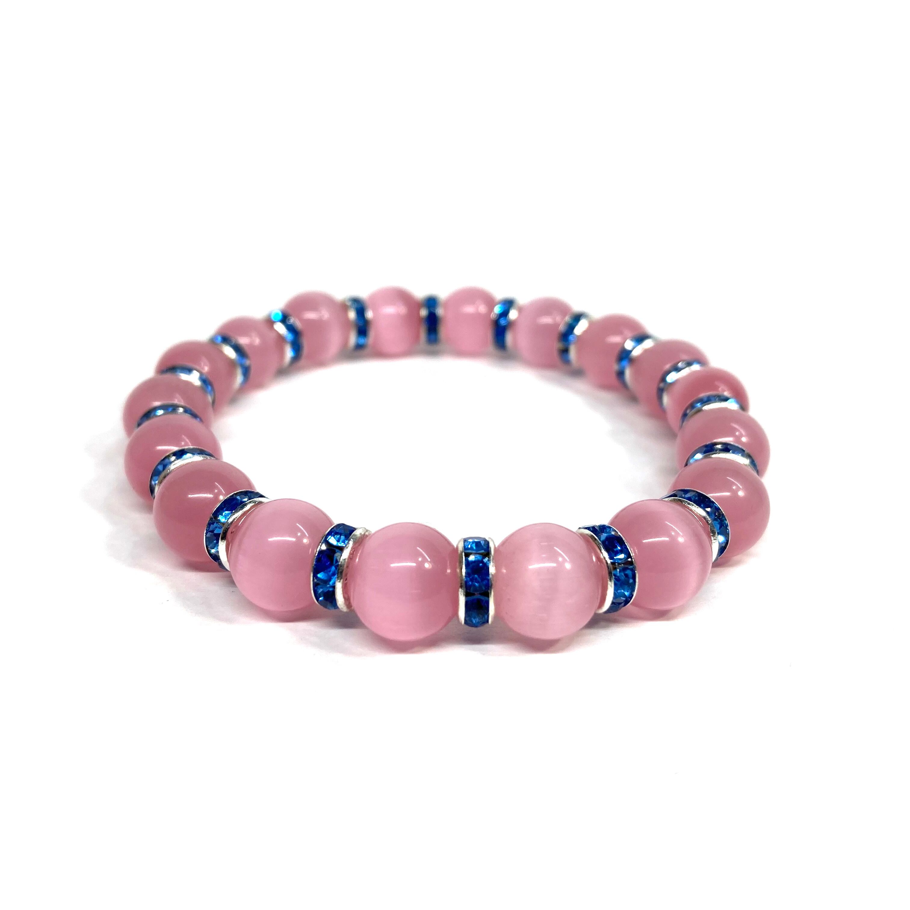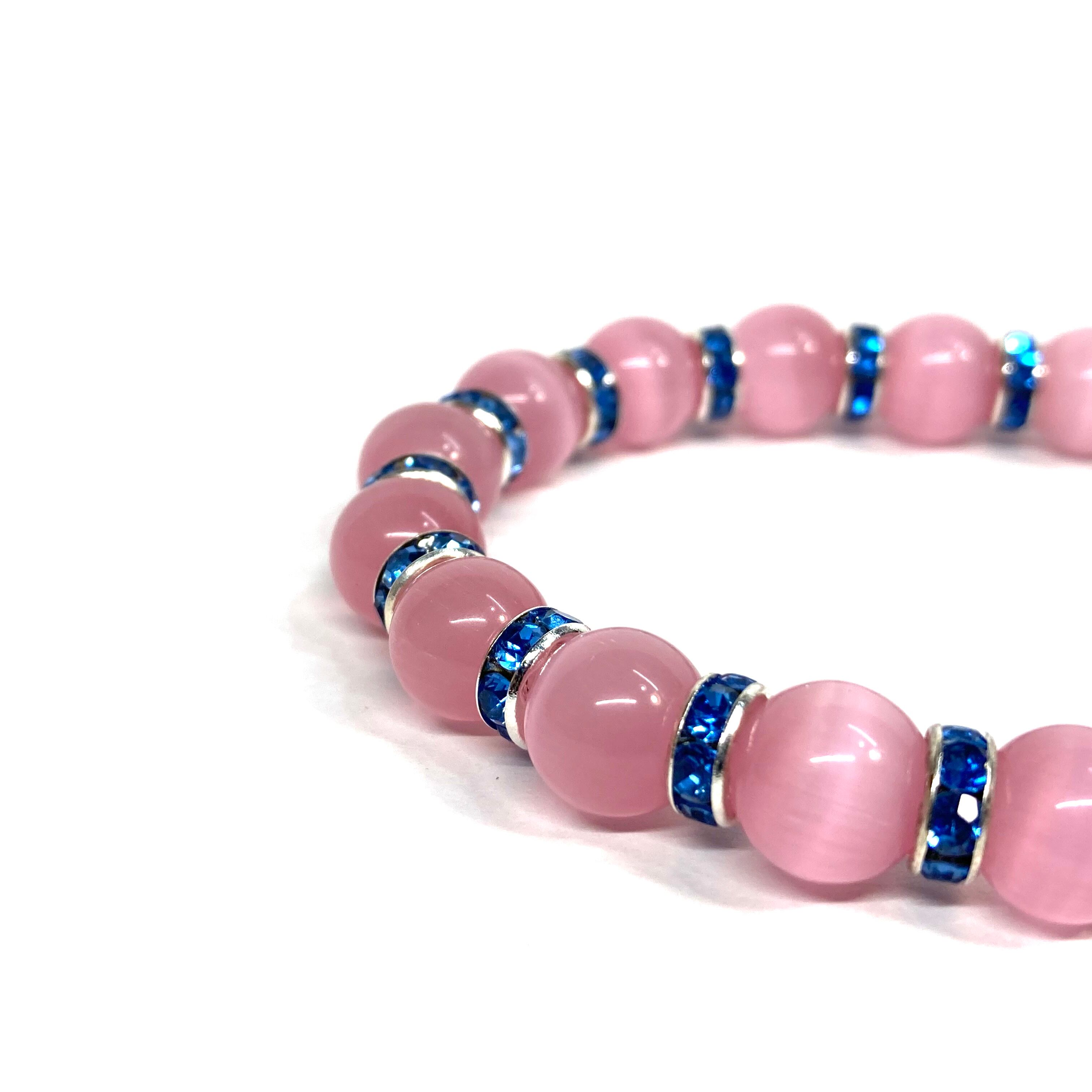 キャッツアイ(ピンク) パワーストーン ブレスレット (ブルー) メンズ・レディース 男性・女性 数珠ブレス 開運
