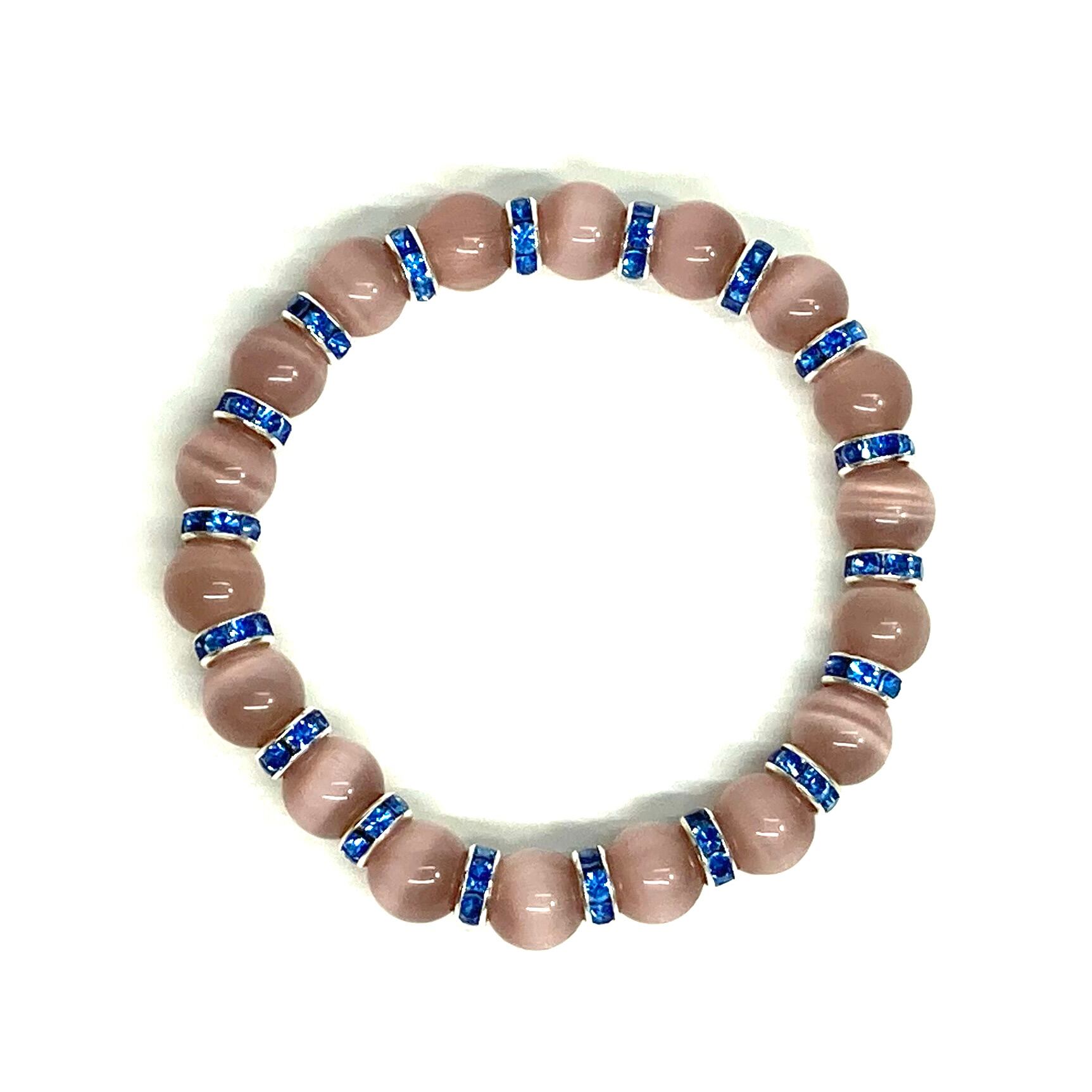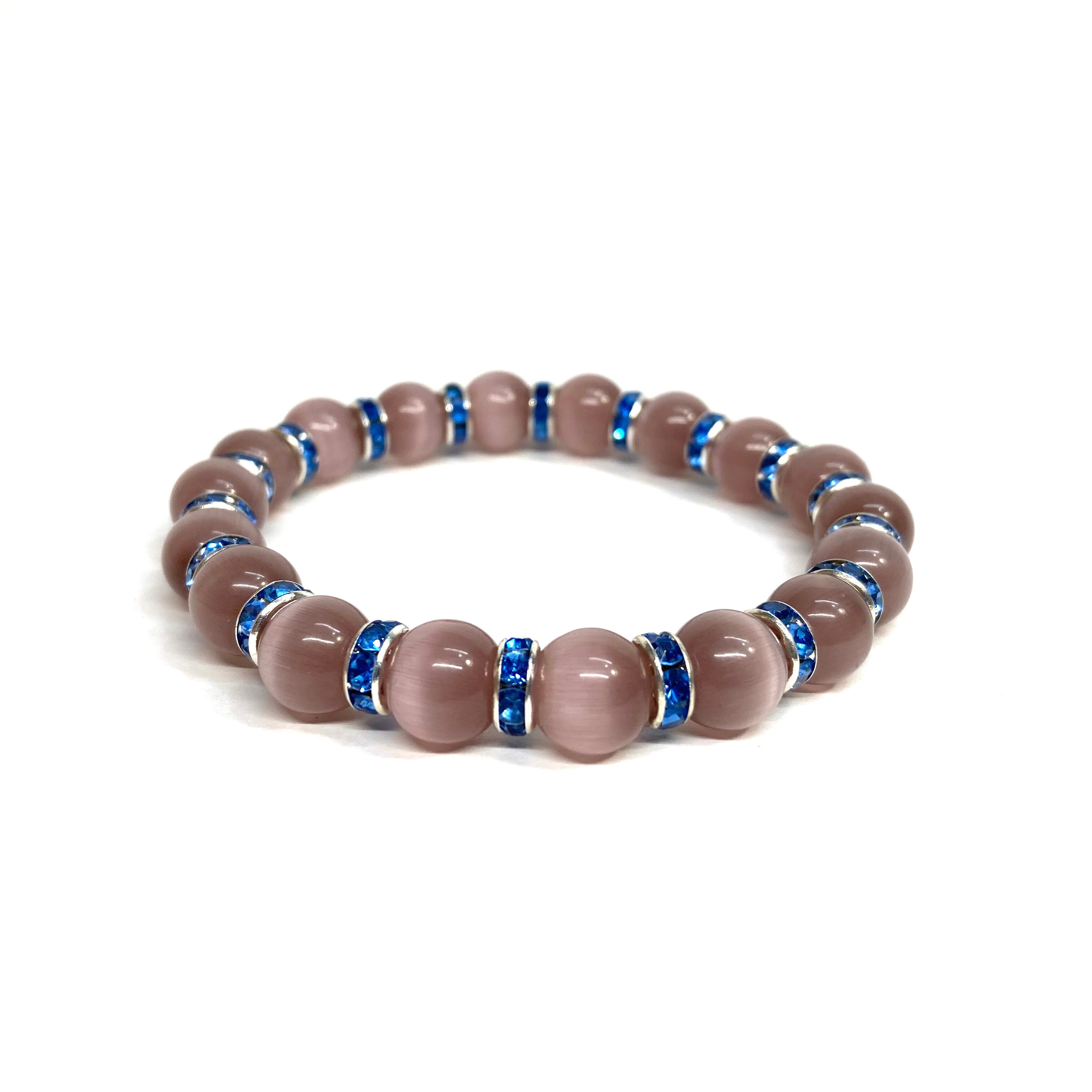 キャッツアイ(ライトパープル) パワーストーン ブレスレット (ブルー) メンズ・レディース 男性・女性 数珠ブレス 開運
