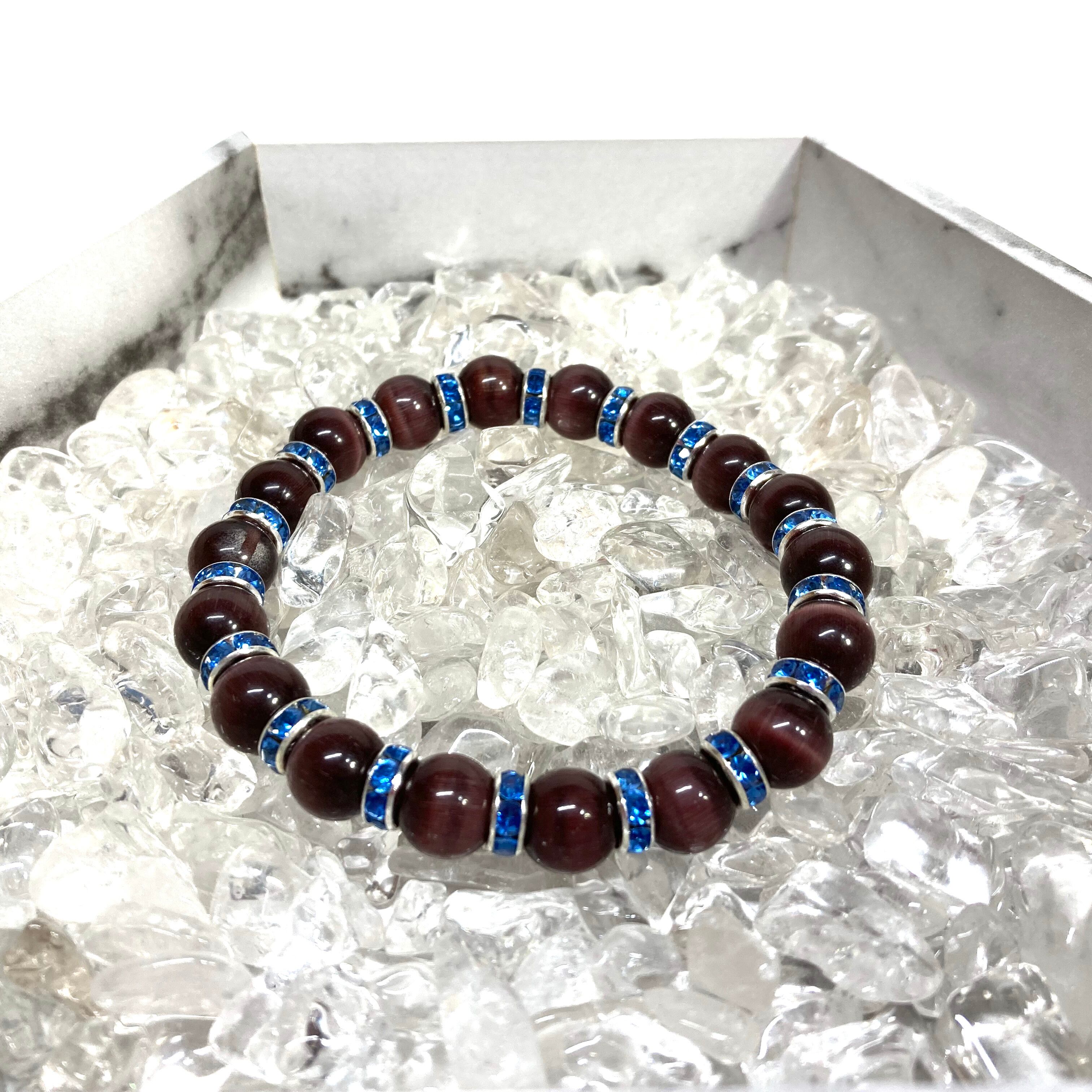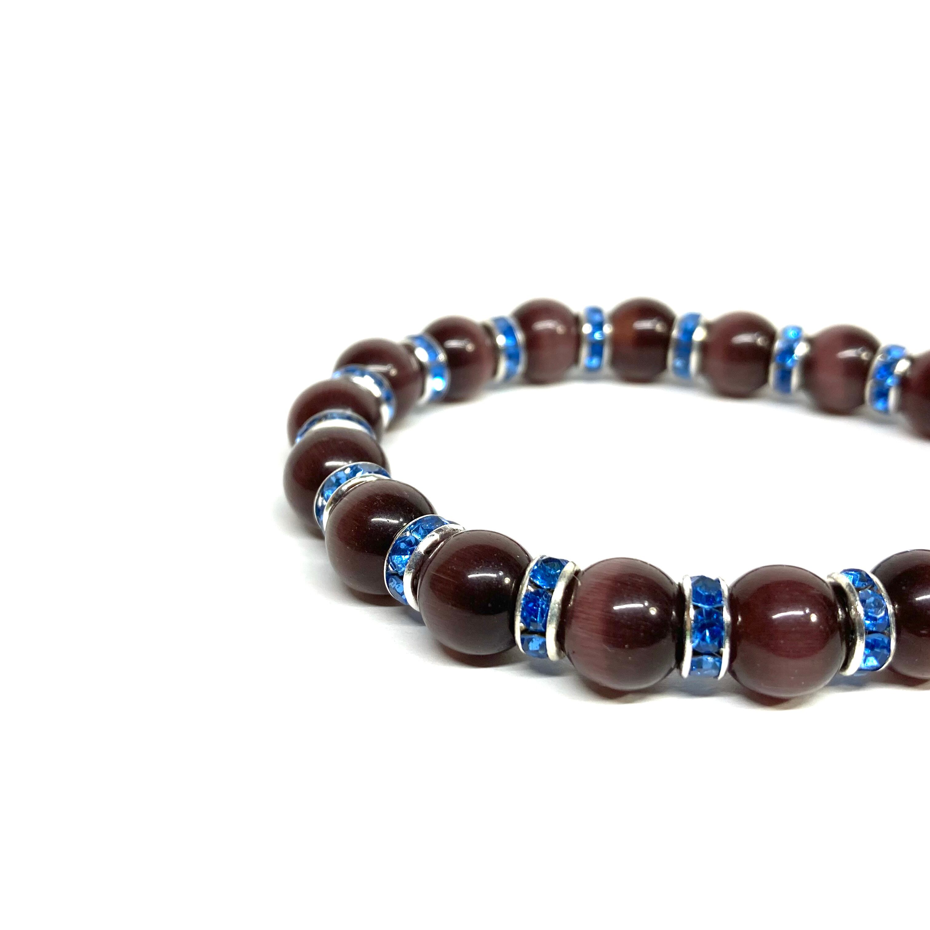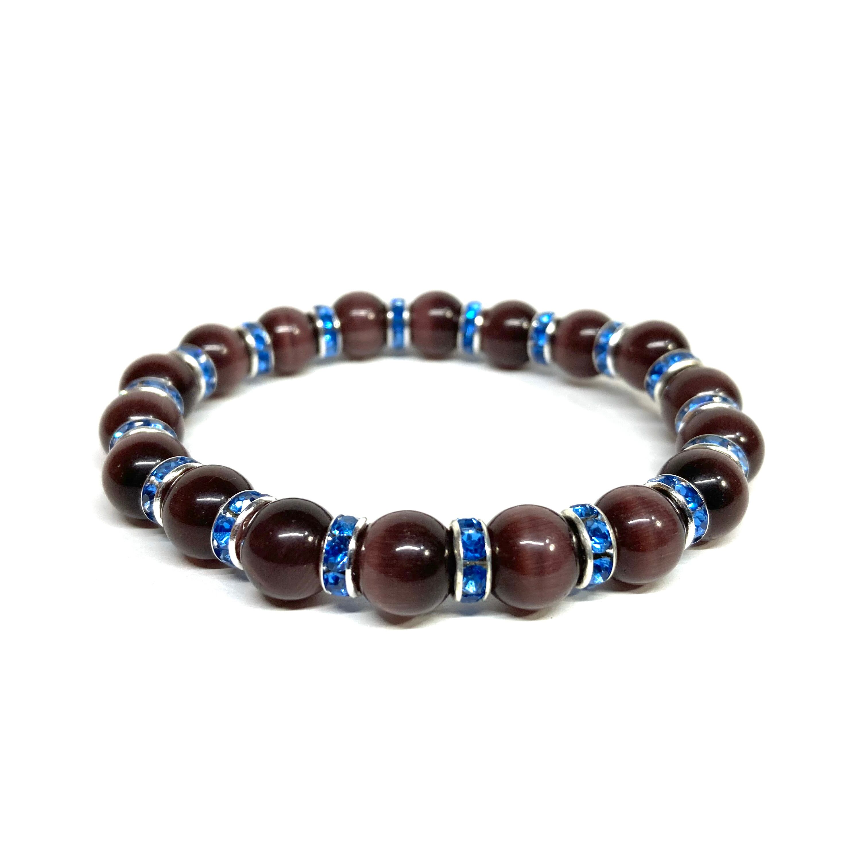 キャッツアイ(パープル) パワーストーン ブレスレット (ブルー) メンズ・レディース 男性・女性 数珠ブレス 開運