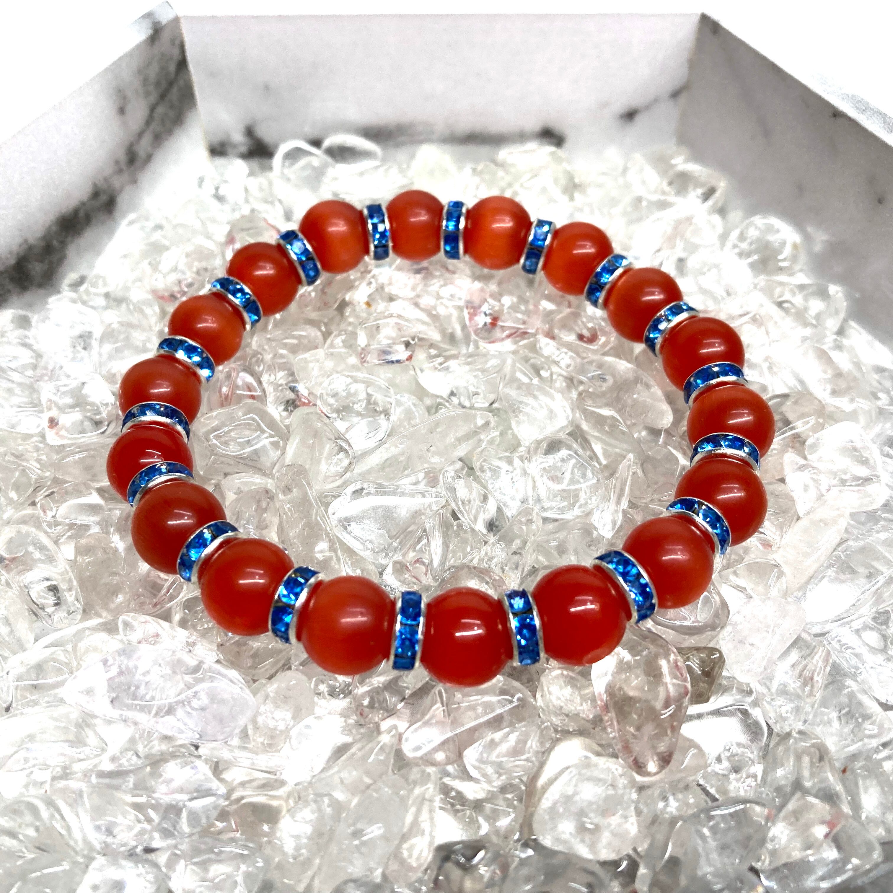 キャッツアイ(レッド) パワーストーン ブレスレット (ブルー) メンズ・レディース 男性・女性 数珠ブレス 開運