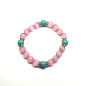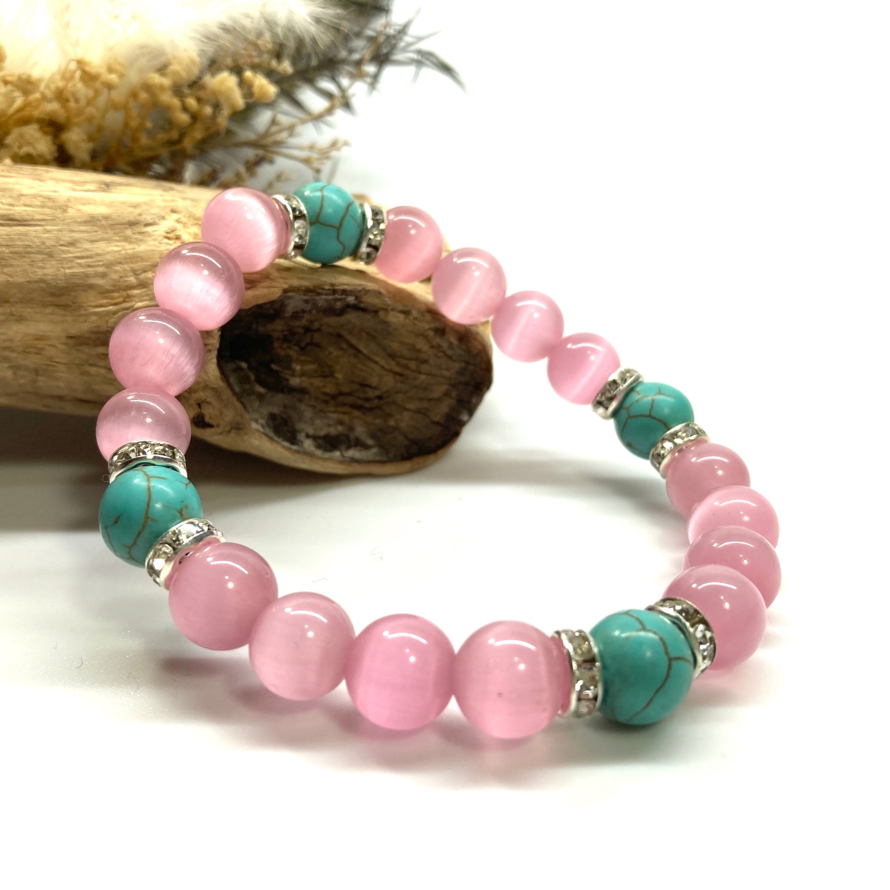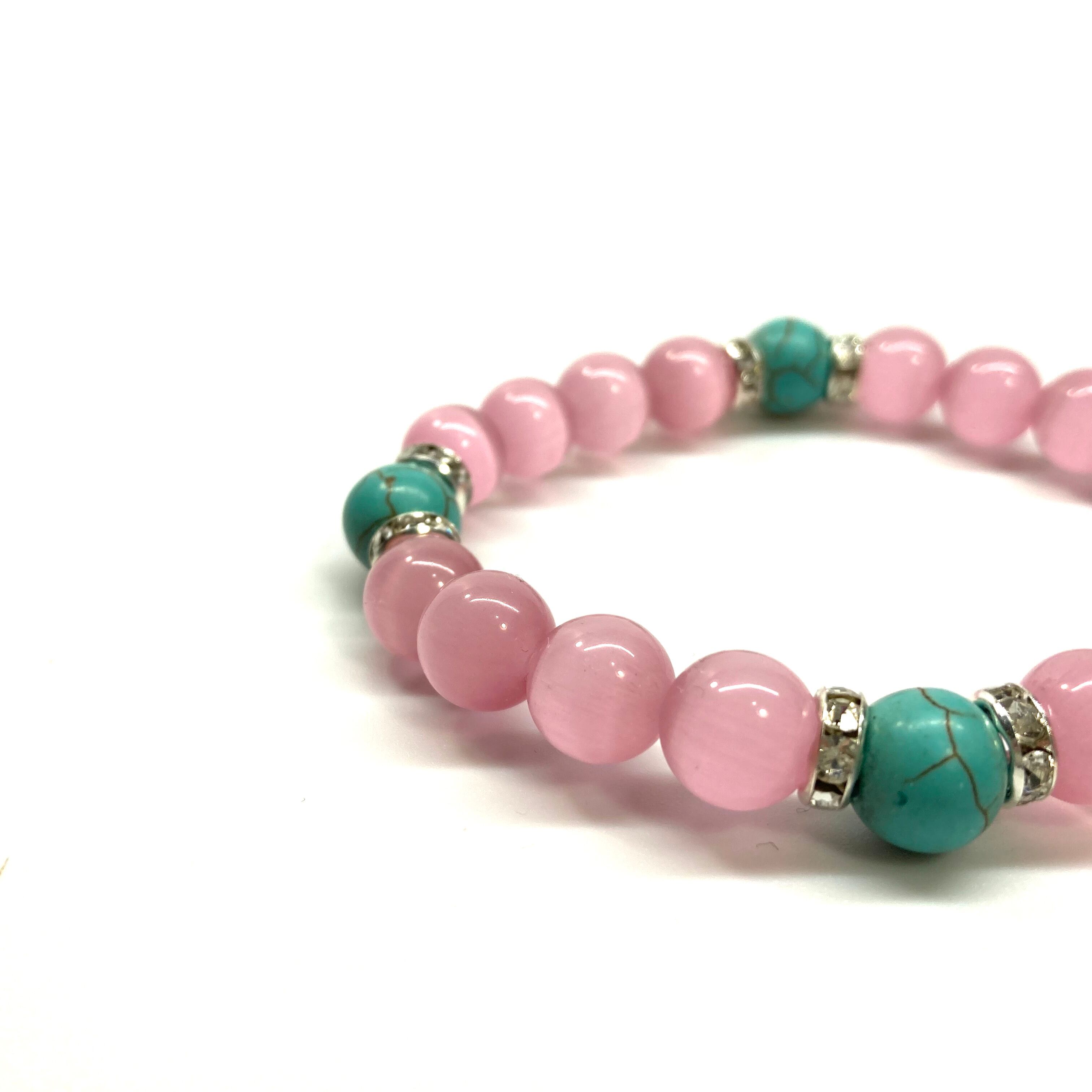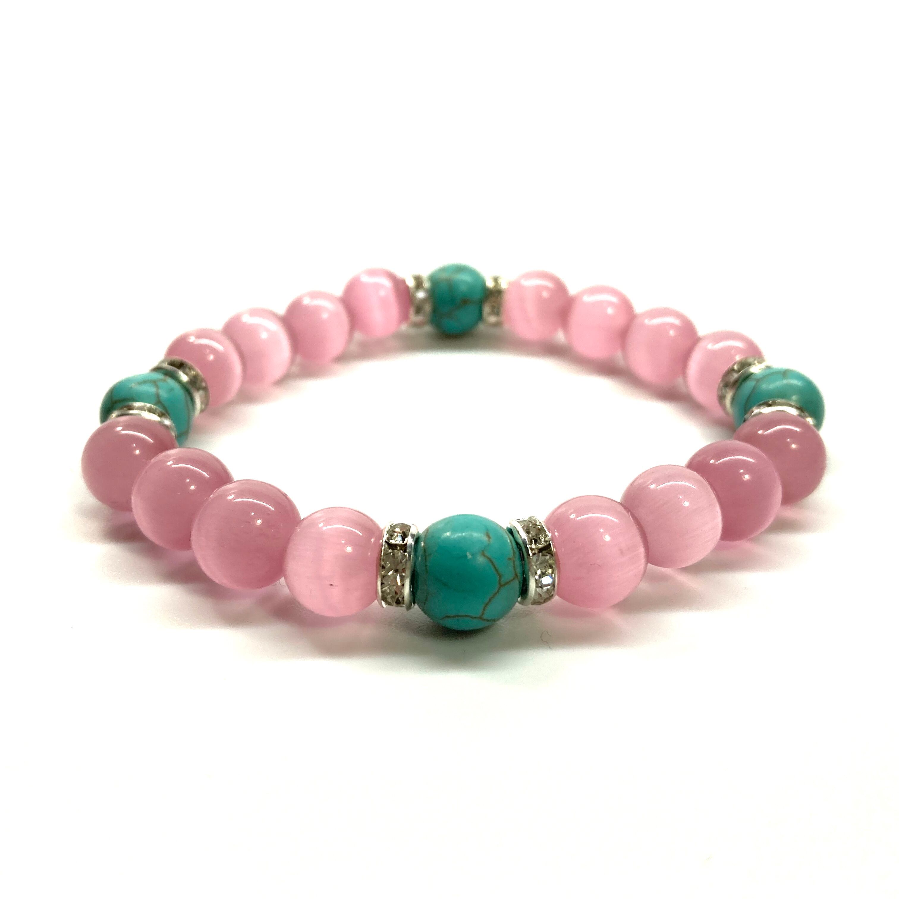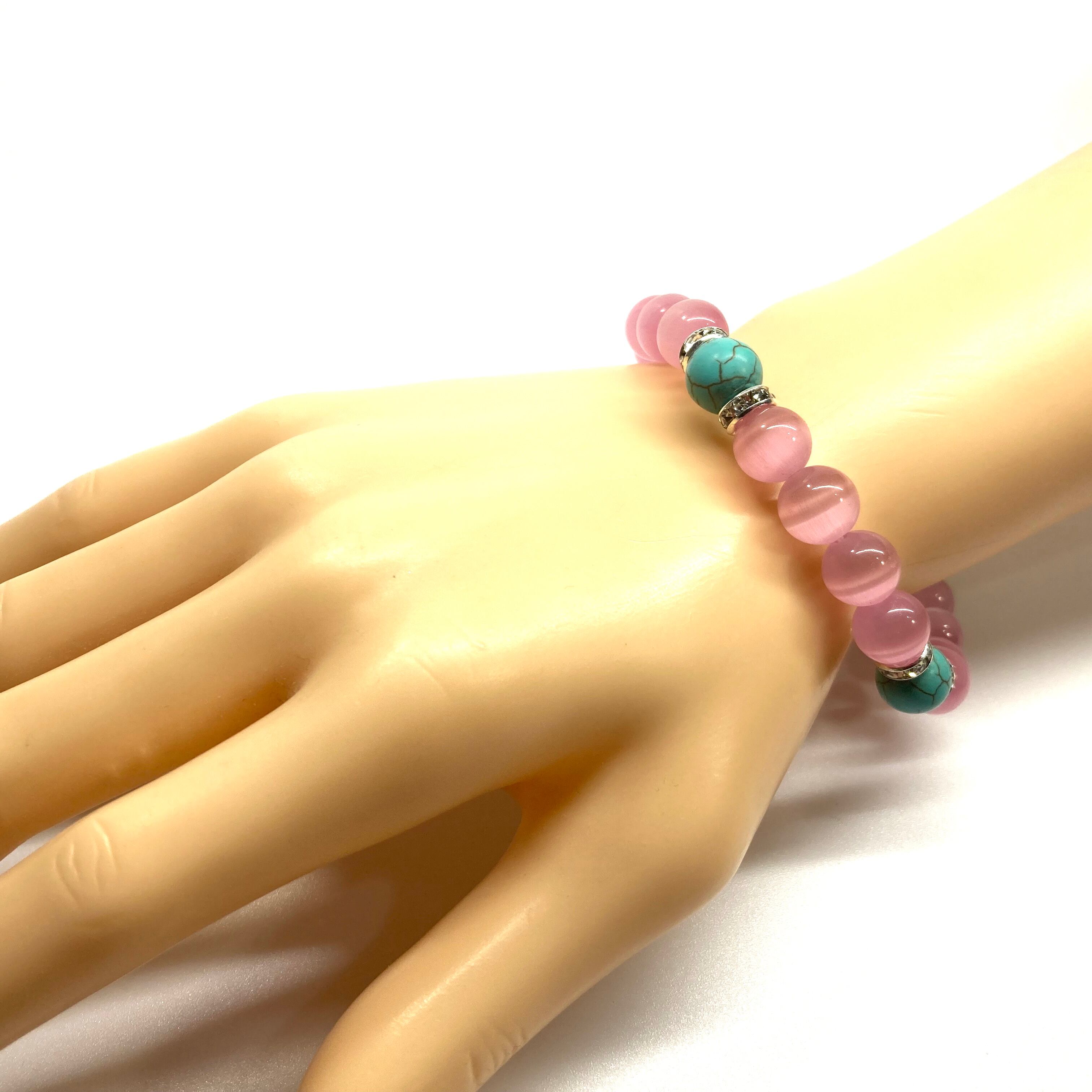 キャッツアイ(ピンク)×ターコイズ パワーストーン ブレスレット (シルバー) メンズ・レディース 男性・女性 数珠ブレス 開運 #2