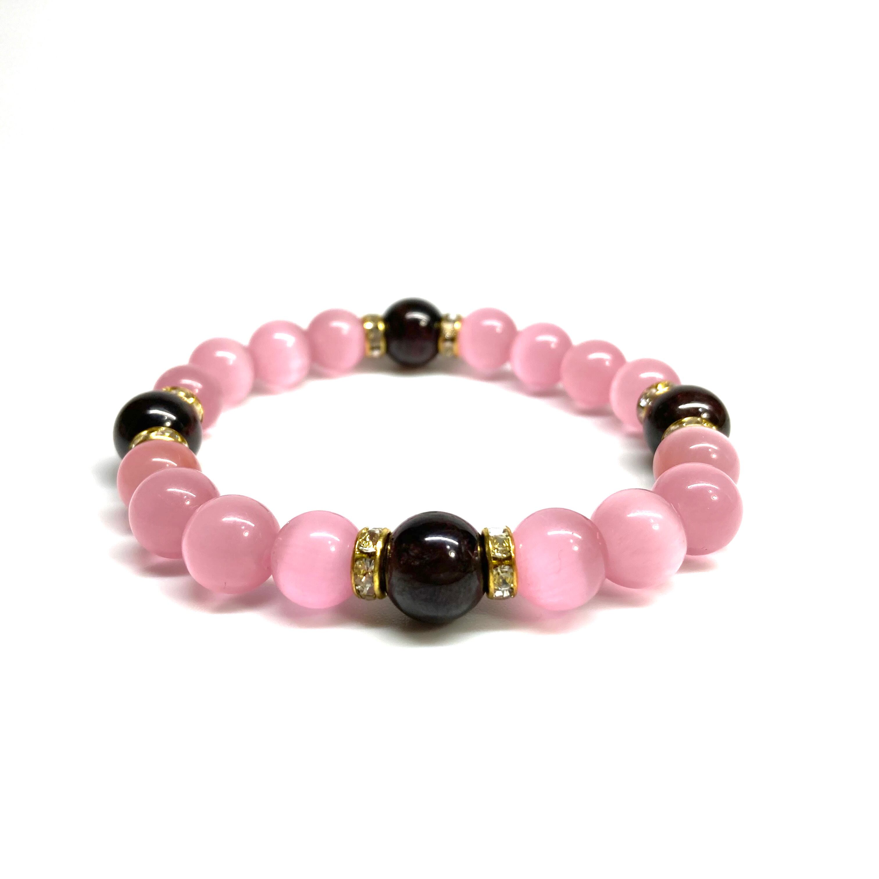 キャッツアイ(ピンク)×ガーネット パワーストーン ブレスレット (ゴールド) メンズ・レディース 男性・女性 数珠ブレス 開運