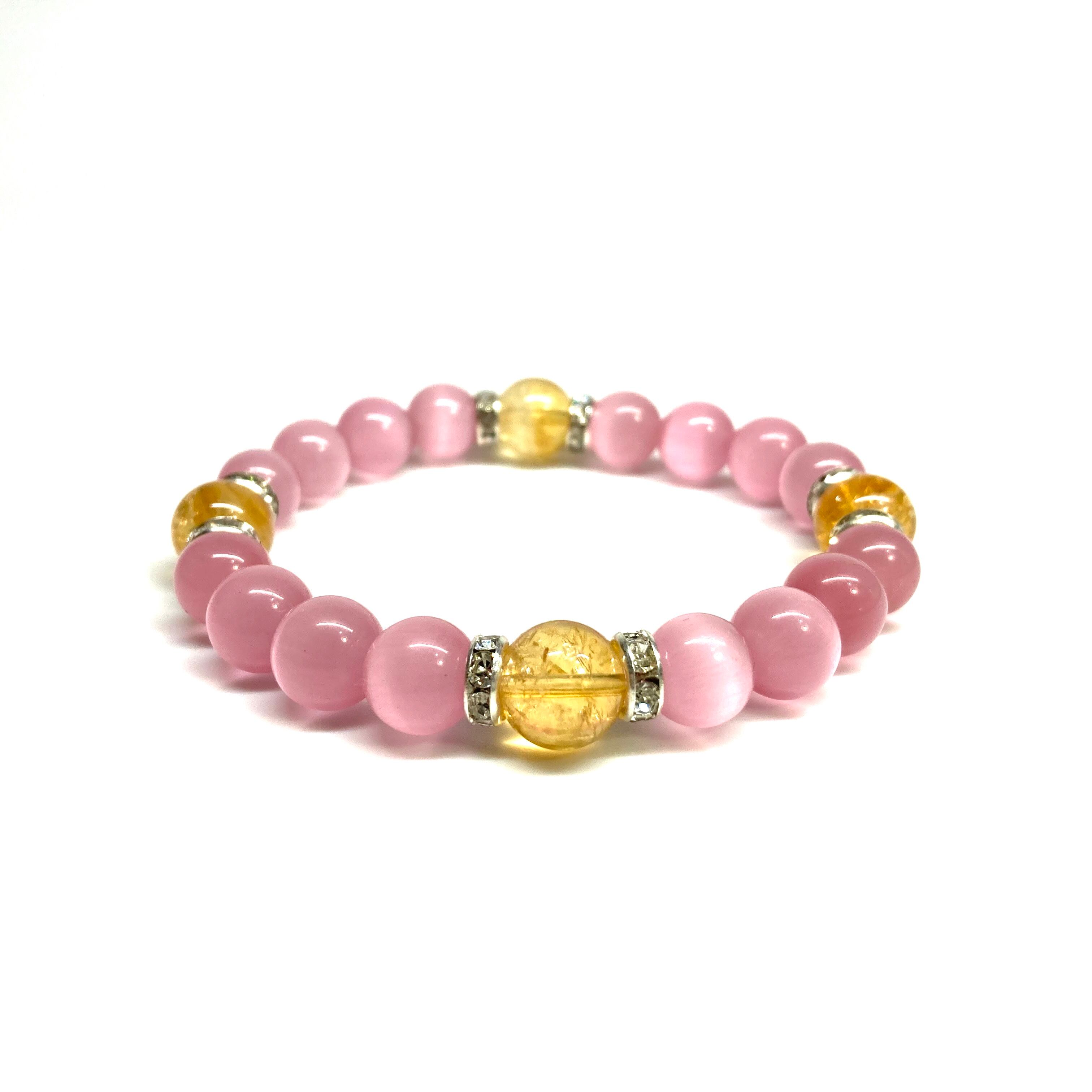 キャッツアイ(ピンク)×ファントムシトリン パワーストーン ブレスレット (シルバー) メンズ・レディース 男性・女性 数珠ブレス 開運