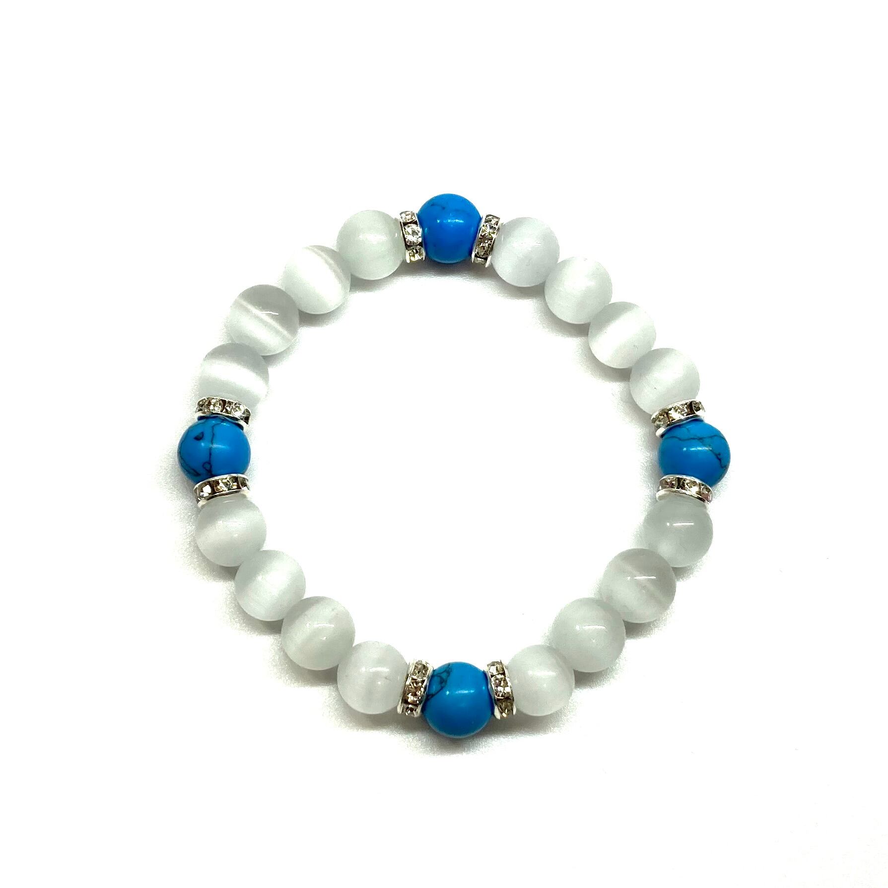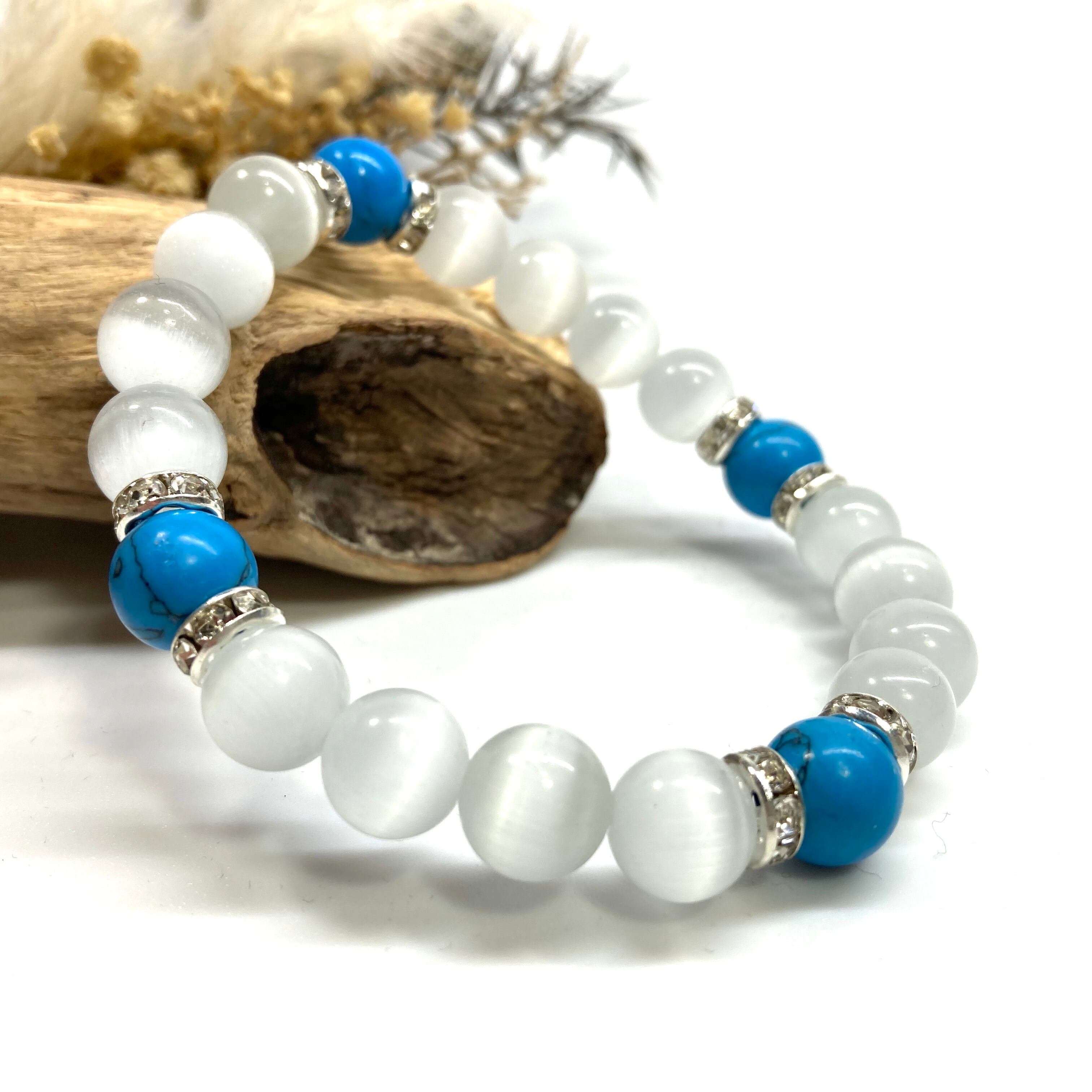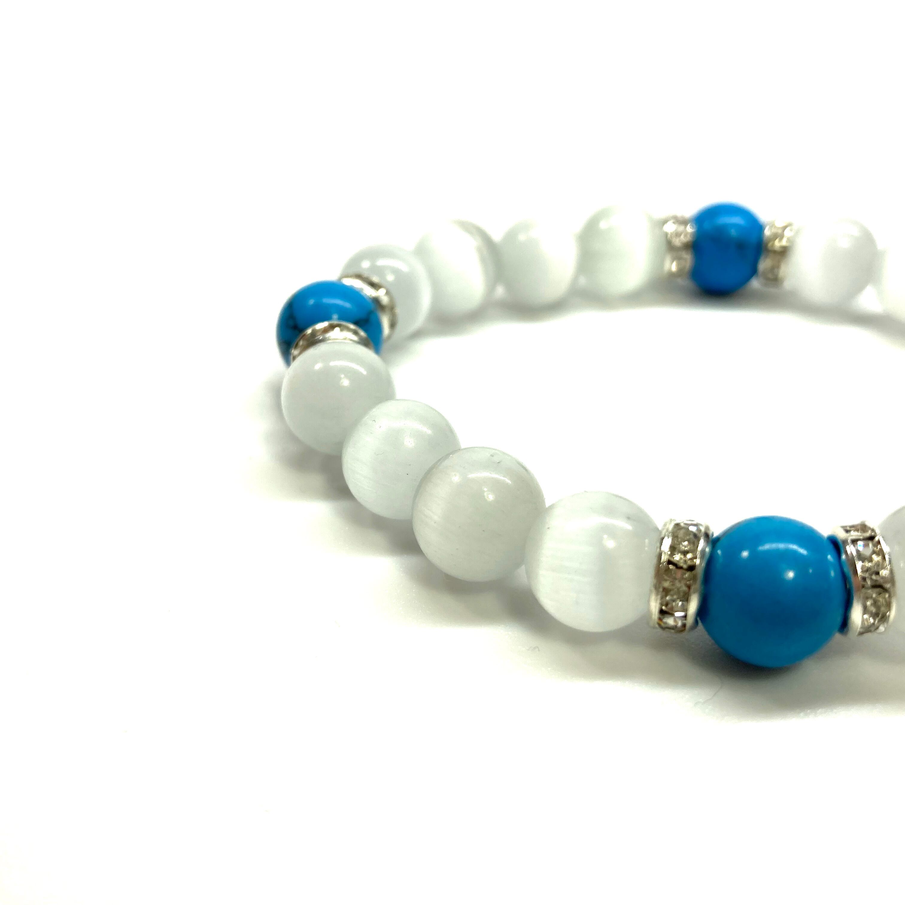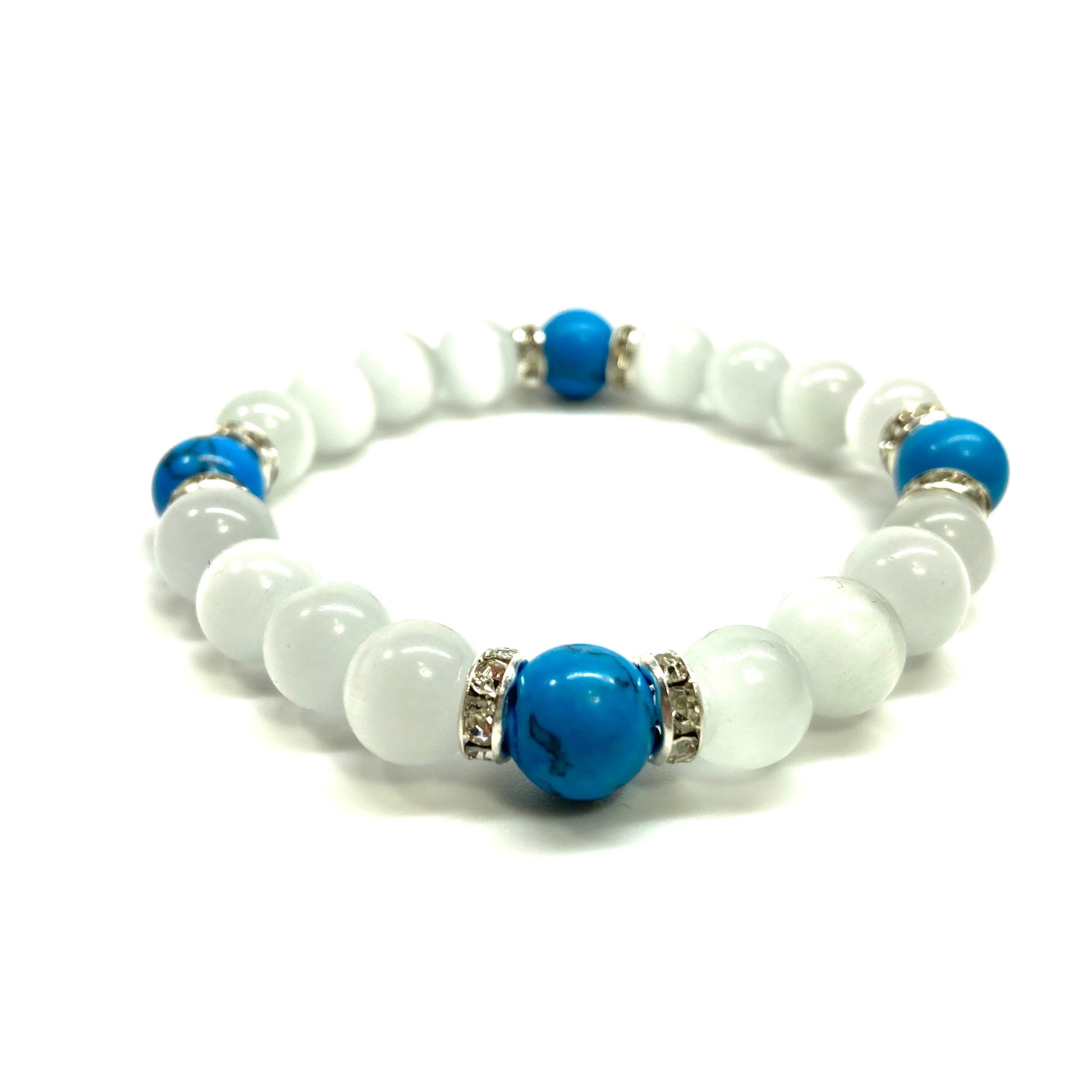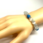 キャッツアイ(ホワイト)×ターコイズ パワーストーン ブレスレット (シルバー) メンズ・レディース 男性・女性 数珠ブレス 開運 #1